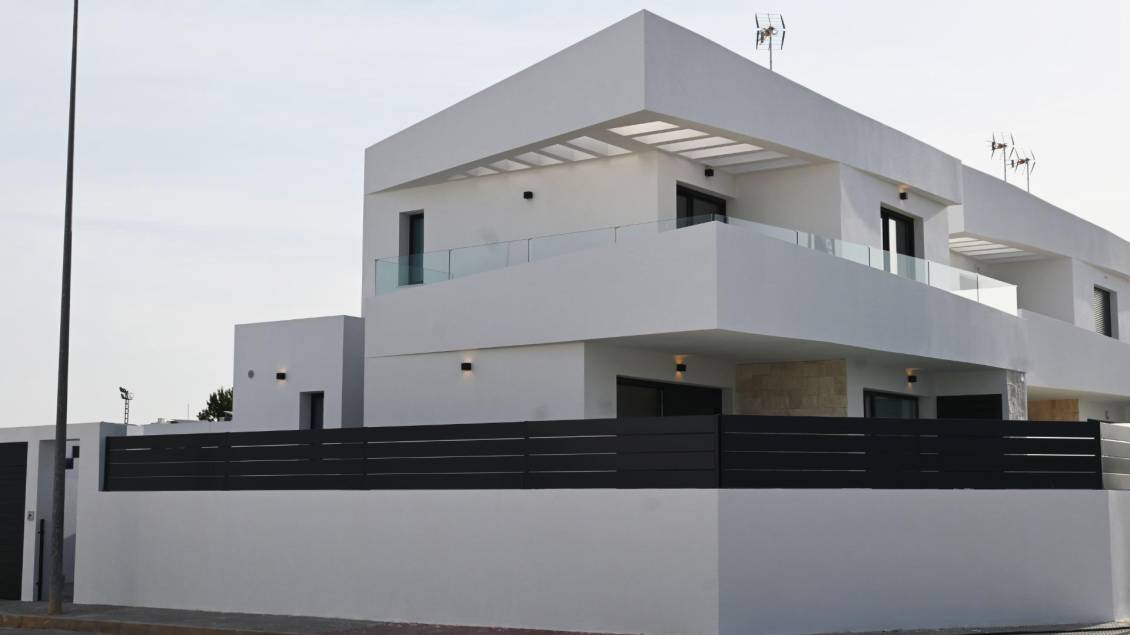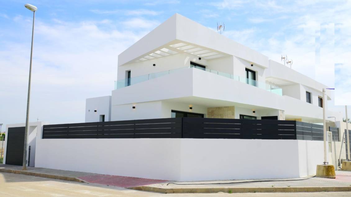 PAREADOS DE OBRA NUEVA EN DOLORES Promoción de villas y pareados de obra nueva en Dolores, Alicante. Esta exclusiva promoción cuenta con un diseño elegante y moderno. Viviendas con acabados de primera calidad, pensadas para combinar bienestar y confort. Villas y pareados modernos con parcelas de más de 200 m2. Todas las viviendas muy luminosas con 3 amplios dormitorios y 3 baños privados totalmente equipados. También hay un aseo adicional para invitados. Con su gran parcela, las viviendas disponen de jardín con piscina independiente y plaza de aparcamiento en la parcela. Vivir en Dolores es una opción maravillosa para aquellos que buscan una vida tranquila y auténtica en la Costa Blanca. Este encantador pueblo español, situado en la comarca de la Vega Baja, le ofrecerá numerosas ventajas. Dolores es una localidad situada en la provincia de Alicante perfectamente comunicada, se encuentra a tan sólo 30 minutos del Aeropuerto de Alicante-Elche, y cuenta con todos los servicios y comodidades necesarias como supermercados, restaurantes, bares y colegios. Es un pueblo con gran encanto, rodeado de impresionantes parajes naturales, como el Parque Natural de las Lagunas de la Mata y Torrevieja, podrá disfrutar de las mejores playas de la Costa Blanca situadas a pocos minutos en coche, de su gastronomía y sobre todo de la tranquilidad y armonía que le proporcionará la zona.