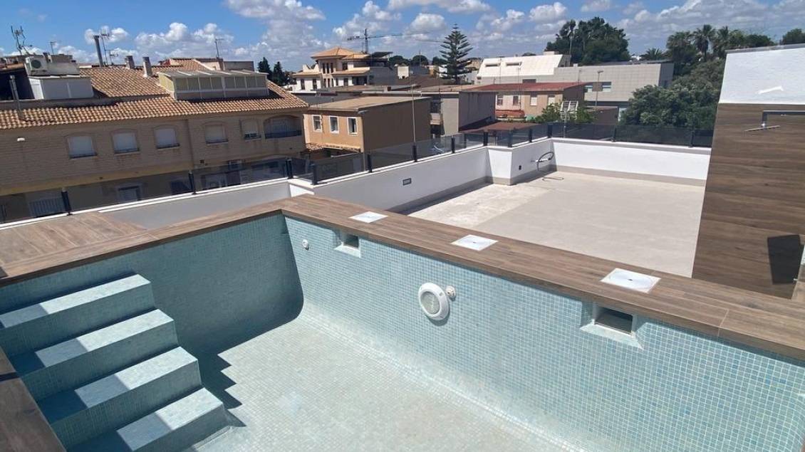 Bungalows de nueva construcción en Lo Pagán: Vida Moderna Cerca de la Playa Ubicación privilegiada en Lo Pagán, San Pedro del Pinatar Descubra el estilo de vida costero perfecto con estos bungalows de nueva construcción en Lo Pagán, una encantadora zona de San Pedro del Pinatar. Situado a sólo 1,2 km de la hermosa Playa de Villa Nanitos, estás a 15 minutos a pie de playas de arena y del icónico Molino Quintín. Esta ubicación privilegiada es perfecta para los amantes de la playa y los deportes náuticos, con clubes náuticos y puertos deportivos en las inmediaciones. Además, todos los servicios esenciales como supermercados, bares y restaurantes están a sólo unos minutos a pie. Características Estos elegantes bungalows disponen de 2 dormitorios, 2 baños, cocina americana y sala de estar. Los bungalows disponen de preinstalación de aire acondicionado, armarios empotrados e interiores modernos. Las unidades de la planta baja cuentan con una amplia terraza con la opción de añadir una piscina privada (disponible a un coste adicional), mientras que las unidades de la planta superior cuentan con un solarium privado con piscina incluida, perfecto para relajarse bajo el sol mediterráneo. Acabados de alta calidad Cada bungalow incluye una plaza de aparcamiento, y todos los apartamentos tienen acabados de alta calidad. Las características incluyen electrodomésticos de cocina Bosch, persianas eléctricas, pre instalación de aire acondicionado por conductos, baños totalmente equipados e iluminación LED tanto en el interior como en el exterior. Ideal para vivir todo el año Lo Pagán ofrece un estilo de vida tranquilo con una comunidad acogedora y establecida. Los residentes pueden disfrutar de actividades durante todo el año gracias al suave clima invernal de la región. La zona cuenta con piscinas cubiertas, instalaciones deportivas y una gran variedad de eventos sociales. Los baños de barro natural y las tranquilas aguas del Mar Menor contribuyen a su atractivo, convirtiéndolo en un destino privilegiado para el bienestar y la relajación. Atracciones cercanas Centro Comercial Dos Mares: 5 minutos en coche Aeropuerto de Murcia (Corvera): 30 minutos en coche Aeropuerto de Alicante: 1 hora en coche Los campos de golf y los puertos deportivos se encuentran a poca distancia en coche, lo que la convierte en una ubicación excelente tanto para el ocio como para la comodidad.