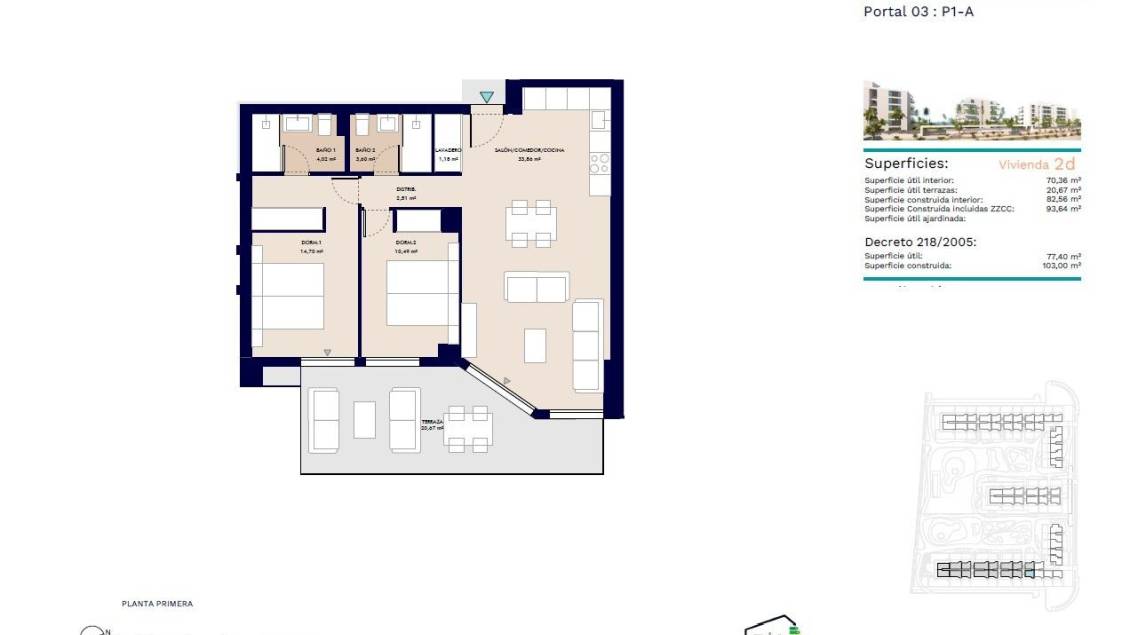82 m2 · 2 Habitaciones · 2 Baños · Piscina