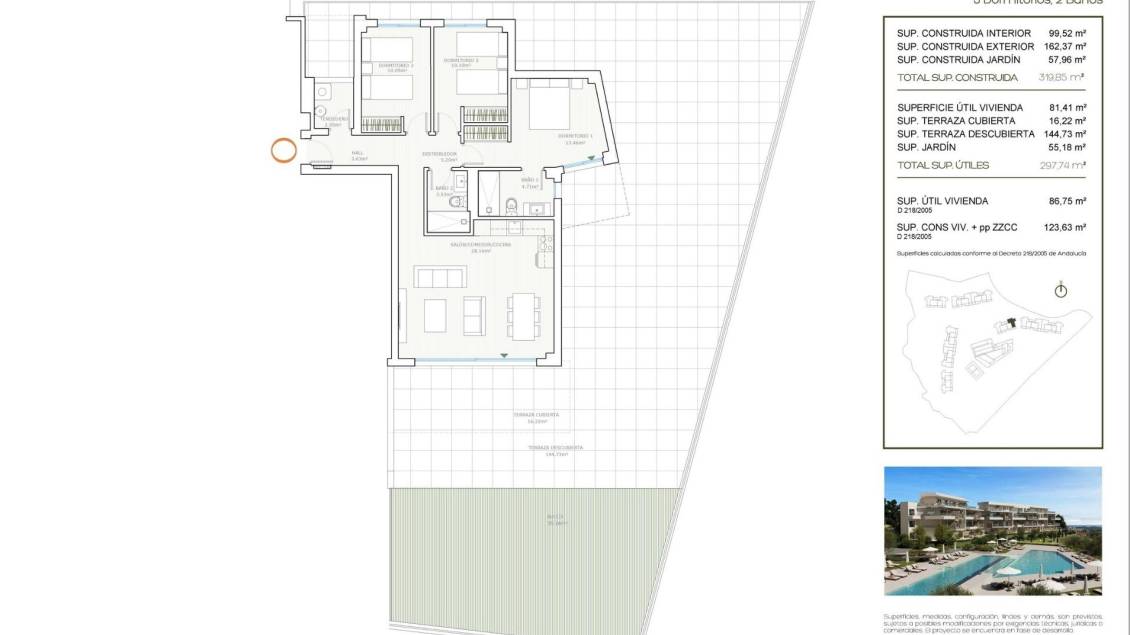 Nuevos apartamentos con vistas al mar en Mijas, Málaga: vida moderna en la Costa del Sol Exclusiva promoción nueva rodeada de golf y naturaleza Este nuevo proyecto residencial en Mijas, Málaga, ofrece 120 elegantes apartamentos de 1, 2 o 3 dormitorios, cuidadosamente diseñados para proporcionar el máximo confort y un estilo de vida moderno. Construida en una amplia parcela de 31 000 m², la comunidad está rodeada de jardines paisajísticos, lo que crea un entorno tranquilo y verde. Su elevada ubicación en una ladera garantiza unas espectaculares vistas de 180 grados al mar, lo que la convierte en un lugar ideal para disfrutar del clima mediterráneo durante todo el año. Opciones de apartamentos que se adaptan a cada estilo de vida Las viviendas están disponibles en diferentes distribuciones, entre las que se incluyen: Apartamentos en planta baja con jardines privados Plantas intermedias con amplias terrazas Áticos con amplias terrazas al aire libre y algunas unidades con soláriums privados Todas las unidades cuentan con diseños diáfanos, grandes ventanales y acabados de alta calidad que garantizan luminosidad, funcionalidad y elegancia. Las cocinas totalmente equipadas con electrodomésticos, aire acondicionado por conductos y una construcción energéticamente eficiente proporcionan todas las comodidades modernas. Servicios de estilo resort para el bienestar diario Este complejo residencial ofrece una amplia gama de zonas comunes diseñadas para el relax, el bienestar y el ocio: Zona de bienestar con spa, piscina cubierta climatizada, sauna y sala de relajación Gimnasio con equipamiento moderno y espacios para actividades Zona de coworking con luz natural y zonas sociales Piscinas de agua salada con tratamiento ecológico Zona chill-out con barbacoa, ideal para reuniones Senderos para caminar, pista de voleibol y putting green para disfrutar al aire libre Servicio de conserjería para lavandería, limpieza, reparaciones y mantenimiento de la comunidad Ubicación privilegiada entre La Cala de Mijas y Fuengirola La urbanización está estratégicamente situada entre La Cala de Mijas y Fuengirola, combinando el encanto de un pueblo costero tradicional andaluz con la vitalidad de una ciudad moderna. Distancias clave: La Cala de Mijas: 4 km Fuengirola: 5 km Costa del Sol Park: 1 km Cerrado del Águila Golf: 2 km El Chaparral Golf: 4 km Playa más cercana: 2 km Aeropuerto de Málaga: 20 km Marbella: 30 km Viva el estilo de vida mediterráneo en Mijas Esto es más que una simple vivienda: es un estilo de vida en el que se unen el diseño, la naturaleza y el confort. Ya sea para vivir de forma permanente, como refugio vacacional o como inversión, estos apartamentos con vistas al mar en Mijas ofrecen una oportunidad excepcional. Póngase en contacto con nosotros hoy mismo para concertar una visita y asegurarse su nueva vivienda en la Costa del Sol.