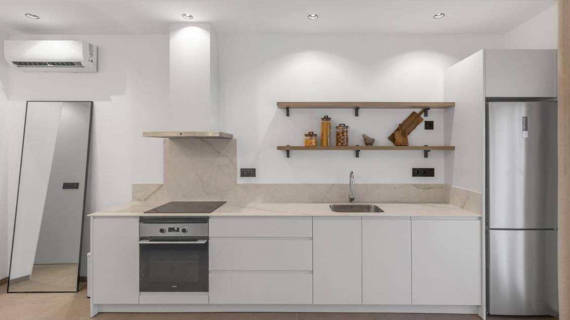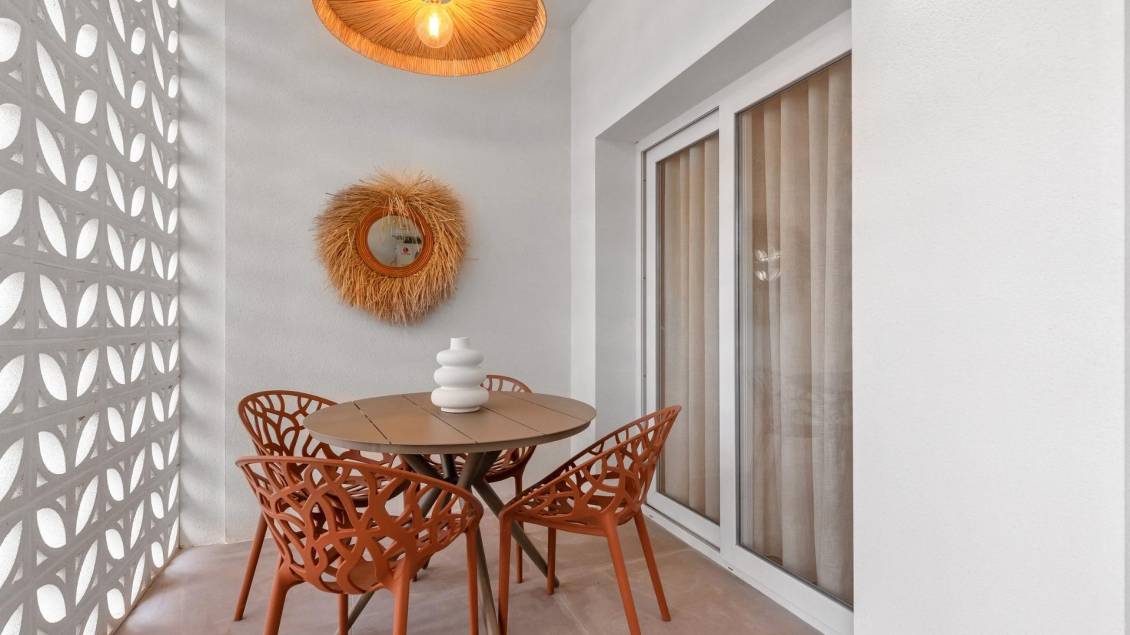 Modernos apartamentos de nueva construcción a solo 150 m del mar en Torrevieja Exclusiva promoción boutique junto a la playa Esta nueva promoción ofrece solo 3 modernos apartamentos en una ubicación privilegiada, a solo 150 metros de la playa de Los Náufragos en Torrevieja. Originalmente parte de un espacio comercial construido en 1989, la propiedad ha sido completamente renovada y transformada en elegantes viviendas de un dormitorio y un baño, diseñadas para la vida moderna en la costa. Diseño contemporáneo y comodidad lista para entrar a vivir Cada apartamento ha sido completamente reformado con acabados de primera calidad y se entrega totalmente amueblado y equipado. Las características incluyen: Cocina abierta con muebles y electrodomésticos incluidos Muebles de diseño, iluminación, cortinas, televisores y decoración Aire acondicionado frío/calor por splits tanto en el salón como en el dormitorio Cuarto de baño con muebles, espejo y mampara de ducha Terraza delantera con sitio para mesa y sillas Esta solución llave en mano le garantiza que podrá disfrutar de su nueva vivienda sin tener que preocuparse por amueblarla o equiparla. La entrega está prevista para febrero de 2026, una vez que se hayan finalizado las licencias y las conexiones de los servicios públicos, lo que la convierte en una oportunidad casi lista para entrar a vivir. Ubicación céntrica privilegiada en Torrevieja Situados a pocos pasos del mar y a 10 minutos del centro de la ciudad, estos apartamentos gozan de una ubicación inmejorable. En un radio de 300 metros encontrará restaurantes, supermercados, farmacias, bancos y opciones de transporte público. El puerto deportivo de Torrevieja está a solo 1 km, y servicios esenciales como el Hospital de Torrevieja y el centro comercial Las Habaneras están a poca distancia. Fácil acceso a destinos clave Playa de Los Náufragos: 150 m Puerto deportivo de Torrevieja: 1 km Campo de golf Villamartín: 10 km Aeropuerto de Alicante: 45 km Un estilo de vida junto al Mediterráneo Torrevieja es uno de los destinos más deseados de la Costa Blanca, conocido por sus playas de arena, su animado paseo marítimo y su excelente clima, con más de 300 días de sol al año. Tanto si busca una residencia permanente, una casa de vacaciones o una inversión, esta promoción boutique ofrece el equilibrio perfecto entre comodidad, estilo y ubicación. Asegúrese hoy mismo su apartamento en la costa Disfrute de una vida moderna a pocos pasos del mar. Póngase en contacto con nosotros ahora para concertar una visita y reservar su nueva vivienda en Torrevieja antes de que sea demasiado tarde.