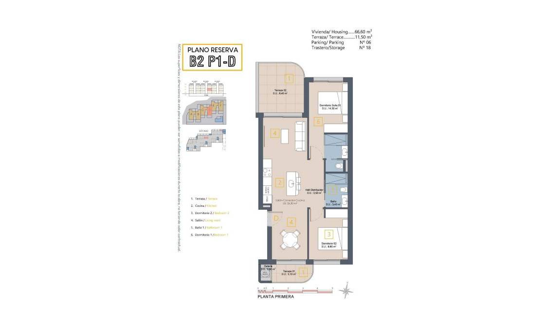 Complejo residencial de nueva construcción en Los Alcázares, en primera línea del campo de golf Serena Vida exclusiva en la Costa Cálida Descubra esta nueva promoción residencial en Los Alcázares, con una ubicación perfecta en primera línea del campo de golf Serena y a solo 1,3 km de las playas del Mar Menor. Ubicado en el corazón de la Costa Cálida, este proyecto combina arquitectura moderna, comodidad y un entorno excepcional. Con excelentes conexiones por carretera, el complejo se encuentra a solo 30 km del aeropuerto de Murcia (25 minutos) y a 90 km del aeropuerto de Alicante (55 minutos), lo que ofrece un fácil acceso a Cartagena, Murcia y la Costa Blanca. Viviendas contemporáneas con un diseño excepcional El complejo residencial incluye 18 elegantes apartamentos y 7 exclusivas villas, cada uno de ellos diseñado para maximizar el espacio, la luz y la funcionalidad. Los residentes disfrutarán de unas vistas impresionantes del campo de golf y, desde las plantas superiores, de las cristalinas aguas del Mar Menor. Elija entre: Apartamentos de 2 o 3 dormitorios y 2 baños, todos con doble orientación y dos terrazas para disfrutar de la luz del sol durante todo el día. Apartamentos en planta baja con jardines privados. Unidades en plantas intermedias con amplias terrazas. Áticos con dos terrazas, solárium privado y vistas panorámicas. Chalets independientes en primera línea de golf, con 3 dormitorios, 2 baños, sótano, solárium y piscina privada. Características y comodidades premium Todas las viviendas están equipadas con acabados de alta calidad y comodidades modernas, entre las que se incluyen: Plaza de aparcamiento y trastero Sistema de agua caliente aerotérmica Aire acondicionado por conductos preinstalado Persianas eléctricas y paquete de iluminación completo Baños completamente equipados con muebles y mamparas de ducha Piscina comunitaria y jardines paisajísticos Ascensor en los bloques de apartamentos Ubicación perfecta para los amantes del golf y la playa Situada en un enclave privilegiado, la urbanización está rodeada por la tranquila vegetación de Serena Golf y se encuentra a pocos pasos de las cálidas y poco profundas aguas del Mar Menor. Esta zona única ofrece oportunidades durante todo el año para practicar natación, vela, paddle surf y otros deportes acuáticos, lo que la hace ideal tanto para el descanso como para la actividad. Distancias clave: Playa (Mar Menor): 1,3 km Serena Golf: junto al complejo Centro de Los Alcázares: 2 km Cartagena: 22 km Ciudad de Murcia: 40 km Aeropuerto de Murcia: 30 km (25 minutos) Aeropuerto de Alicante: 90 km (55 minutos) Asegúrese su estilo de vida mediterráneo Esta promoción en Los Alcázares ofrece la combinación perfecta de playa, golf y vida moderna. Ya sea como residencia permanente, refugio vacacional o inversión, proporciona todo lo necesario para un auténtico estilo de vida mediterráneo. Póngase en contacto con nosotros hoy mismo para concertar una visita y asegurarse su nueva vivienda en la Costa Cálida.