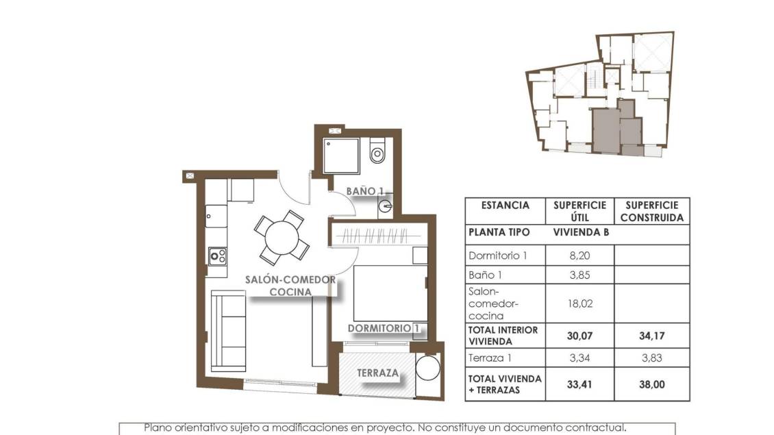 Apartamentos modernos en venta a solo 250 m de la playa de El Cura en Torrevieja, Costa Blanca Exclusiva promoción nueva cerca del mar Este nuevo complejo residencial de 16 viviendas contemporáneas está diseñado para capturar la esencia de la vida mediterránea. Situado a solo 250 metros de la playa de El Cura en Torrevieja (Alicante), esta promoción ofrece una combinación perfecta de comodidad, diseño y ubicación. Con todos los servicios cerca y excelentes conexiones de transporte público, incluida la estación principal de autobuses a poca distancia, ofrece un entorno ideal tanto para vivir todo el año como para pasar las vacaciones junto al mar. Diseño moderno y espacios funcionales La promoción incluye una selección de viviendas de 1 y 2 dormitorios con 1 o 2 baños, que ofrecen diferentes distribuciones para adaptarse a cada estilo de vida. Cada residencia se caracteriza por sus espacios luminosos y abiertos, sus elegantes acabados y su excelente calidad de construcción. Entre sus características se incluyen armarios empotrados, preinstalación de aire acondicionado por conductos, acceso por ascensor y materiales de alta calidad en toda la vivienda. Los apartamentos de la planta baja y las unidades estándar cuentan con terrazas privadas ideales para relajarse al aire libre, mientras que los áticos disponen de amplios soláriums privados, perfectos para tomar el sol, celebrar cenas o disfrutar de las hermosas puestas de sol del Mediterráneo. Zonas comunes exclusivas para su disfrute El complejo residencial está diseñado para ofrecer comodidad y vida social. Los residentes pueden disfrutar de una espectacular zona comunitaria en la azotea con piscina, espacios para tomar el sol con tumbonas y zonas ajardinadas, un refugio tranquilo para relajarse en verano. Ubicación privilegiada en Torrevieja Torrevieja es uno de los destinos más populares de la Costa Blanca, conocido por sus playas de aguas cristalinas, su agradable clima durante todo el año y su animado ambiente costero. Vivir aquí significa disfrutar de paseos diarios por el paseo marítimo, cenar en restaurantes frente al mar y experimentar el auténtico estilo de vida mediterráneo. Distancias a puntos de interés clave Playa El Cura: 250 m Puerto deportivo y puerto de Torrevieja: 2 km Centro comercial Las Habaneras: 3 km Campos de golf más cercanos: 7-10 km Aeropuerto de Alicante-Elche: 45 km La casa perfecta junto al mar Tanto si busca una residencia permanente, una casa de vacaciones o una oportunidad de inversión inteligente, estos apartamentos de nueva construcción en Torrevieja ofrecen la combinación perfecta de vida moderna, encanto costero y comodidad. Póngase en contacto con nosotros hoy mismo para obtener más información o para programar su visita y asegurarse la casa de sus sueños a pocos pasos de la playa de El Cura en Torrevieja.
