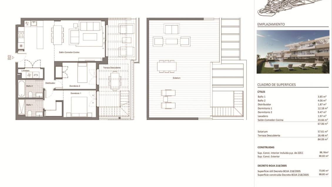 99 m2 · 2 Habitaciones · 2 Baños · Piscina