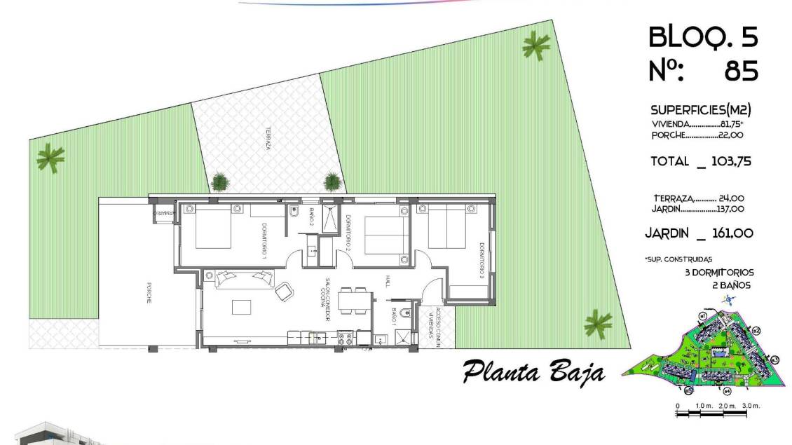 103 m2 · 137 m2 terreno · 3 Habitaciones · 2 Baños · Piscina