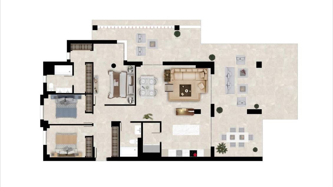 COMPLEJO RESIDENCIAL DE OBRA NUEVA EN LOS JARALILLOS, BENAHAVÍS Complejo residencial de obra nueva de 60 apartamentos y áticos con plaza de garaje y trastero privado situado en la zona de Benahavís. El nuevo residencial forma parte de la reconocida urbanización privada con la que compartirán el disfrute de sus actuales cuatro piscinas con sus amplios jardines, fuentes y bar, todo ello en un recinto privado vigilado, con servicio exclusivo de conserjería. Una de las urbanizaciones más tranquilas y seguras de la Costa del Sol, en una ubicación privilegiada en lo alto del valle, dominando las vistas panorámicas a los campos de golf de Atalaya y El Paraíso y a la bahía de Marbella. El complejo residencial se distribuye en 5 edificios de sólo 12 apartamentos de 2 y 3 dormitorios y áticos, todos con amplias terrazas, enclavados en una bonita colina y orientados al sureste hacia el Valle del Golf, con una exclusiva sensación de tranquilidad y seguridad que no encontrará en ninguna otra urbanización de la zona. Las terrazas, de estilo paisajístico, se integran en los salones de cada vivienda con grandes puertas correderas para aprovechar al máximo la luz natural disponible, así como para disfrutar de las espectaculares vistas al exterior, beneficiándose las viviendas de la belleza del paisaje circundante, proporcionando una sensación de relajación y tranquilidad para disfrute de los residentes. Las viviendas cuentan con amplios salones y un luminoso dormitorio principal con baño en suite junto con un segundo baño para los otros dos dormitorios. Las viviendas se entregarán totalmente equipadas con todo lo necesario para que usted sólo tenga que mudarse, además las especificaciones de construcción incluyen materiales y acabados de alta calidad con un original diseño interior de estilo mediterráneo que complementa a la perfección el prestigioso complejo en el que se encuentran. Todas las viviendas incluyen una plaza de aparcamiento subterráneo con preinstalación de un punto de carga para vehículos eléctricos y un trastero. El residencial es una finca cerrada con acceso privado para garantizar la seguridad y tranquilidad de sus residentes. También cuenta con encantadoras zonas ajardinadas y unas piscinas comunitarias de diseño (adultos y niños) con zona de solárium y duchas. Fecha estimada de finalización: marzo de 2026.