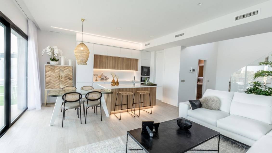 VILLAS DE OBRA NUEVA CON PISCINA PRIVADA Y CASA DE INVITADOS Nueva construcción de un exclusivo complejo residencial de villas ubicado en Finestrat cerca de las maravillosas playas de Benidorm. Nuevo modelo de hermosa villa con casa de invitados en la parcela. Hay 17 villas de este tipo a la venta. La villa está construida en dos plantas. En la planta baja, hay un luminoso salón, con grandes ventanales y acceso directo a la piscina y jardín, dormitorio y baño. En el primer piso, hay dos habitaciones tipo suite, con acceso a una terraza abierta. Se construye una casa de invitados en un nivel, que consta de un dormitorio y un baño, además de esto, hay una acogedora terraza con acceso a la villa principal, piscina y jardín. Residencial situado a 5 min en coche de todos los servicios que ofrece Benidorm y en un entorno con una temperatura media anual de 20ºC y 300 días de sol al año, a 44 km del aeropuerto de Alicante, a 3 km del mar y a 200 metros del golf.