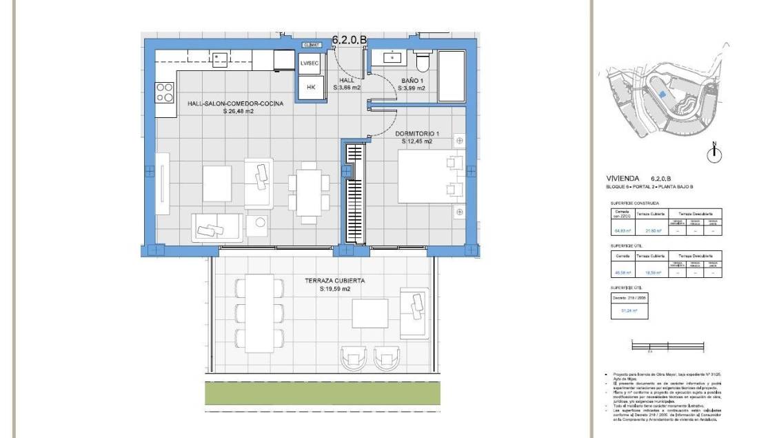 64 m2 · 1 Habitaciones · 1 Baños · Piscina