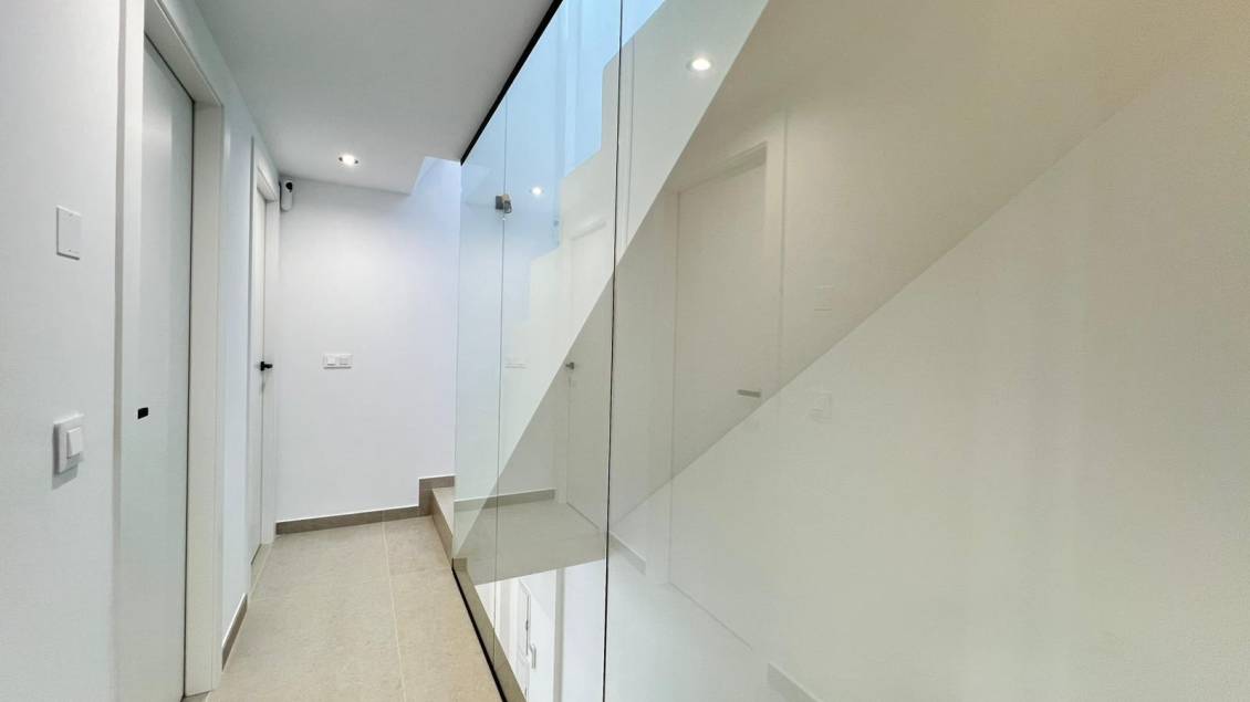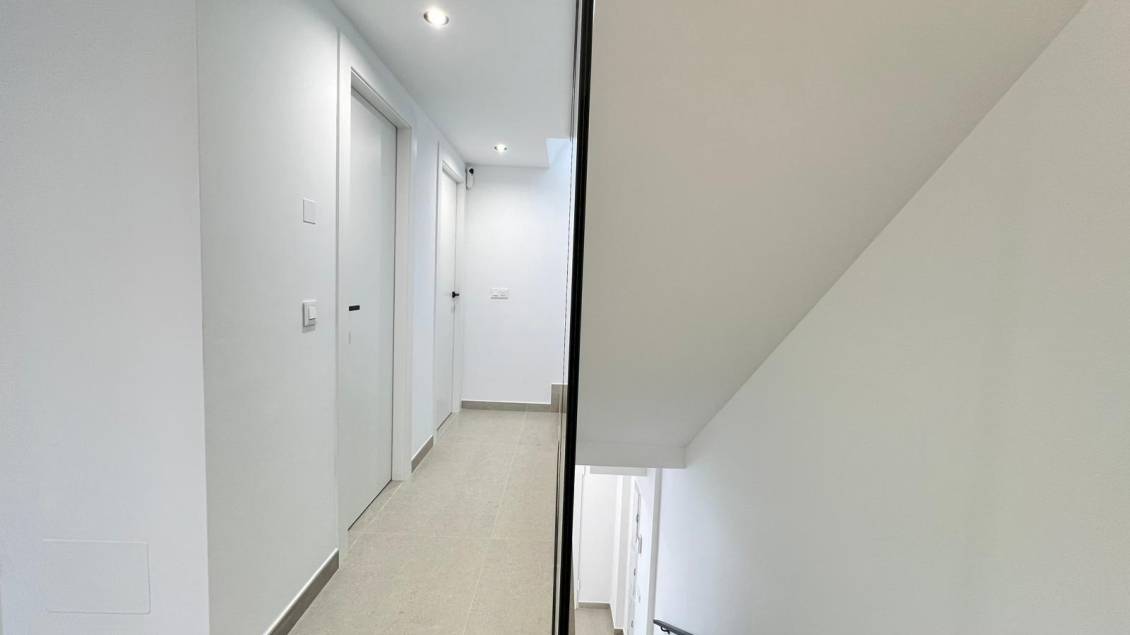 Modernas villas adosadas de nueva construcción en Benferri, Alicante Exclusiva promoción nueva en Benfis Park Descubra esta nueva promoción de 10 modernas villas adosadas situadas en Benfis Park, Benferri, en el corazón de la comarca de la Vega Baja, en Alicante. Esta encantadora localidad ofrece un ambiente residencial tranquilo, con calles bien cuidadas y una comunidad acogedora, ideal para familias, jubilados o cualquier persona que busque un estilo de vida relajado bajo el sol del Mediterráneo. Benferri combina el encanto rural con un excelente acceso a las ciudades cercanas, las playas y las principales conexiones de transporte. Amplias villas con solárium privado Cada villa ofrece una superficie total construida de 222 m² y se distribuye en tres plantas más un solárium privado. La planta sótano incluye un garaje con espacio para dos coches y un trastero. La planta baja cuenta con un luminoso salón-comedor diáfano con una moderna cocina, un lavadero y un aseo de invitados, con acceso directo a una terraza que rodea la vivienda. En la primera planta hay tres dormitorios y dos baños, uno de ellos en suite, así como dos terrazas que dan servicio a dos de los dormitorios. La planta superior ofrece un solárium privado de aproximadamente 39 m², perfecto para tomar el sol, comer al aire libre o relajarse con vistas abiertas. Características modernas y piscina opcional Las villas cuentan con una cocina totalmente equipada, incluyendo electrodomésticos, y preinstalación para aire acondicionado por conductos. Se ofrece una piscina privada como extra opcional, lo que permite a los compradores personalizar aún más su vivienda. El diseño se centra en la comodidad, la funcionalidad y la luz natural, creando un entorno de vida contemporáneo ideal para vivir todo el año o para uso vacacional. Vivir en Benferri Vega Baja Benferri se encuentra a pocos minutos de Orihuela y cuenta con un rápido acceso a la autopista AP 7, lo que hace que los desplazamientos a las playas de la Costa Blanca, al aeropuerto de Alicante-Elche y a las principales zonas comerciales y de ocio sean rápidos y cómodos. El paisaje circundante se caracteriza por fértiles tierras de cultivo, suaves colinas y paisajes mediterráneos, que ofrecen una sensación de bienestar y conexión con la naturaleza. La localidad cuenta con todos los servicios esenciales, como supermercados, colegios, instalaciones deportivas y un animado ambiente local durante todo el año. Distancias a puntos de interés Orihuela 8 km Playa de Guardamar del Segura 25 km La Finca Golf Resort 18 km Vistabella Golf 14 km Aeropuerto de Alicante-Elche 45 km Puerto de Torrevieja 32 km Centro comercial Zenia Boulevard 30 km Su nuevo hogar en la Costa Blanca Estas villas adosadas de nueva construcción en Benferri ofrecen un espacio generoso, un diseño moderno y una ubicación estratégica cerca de playas, campos de golf y servicios clave. Póngase en contacto con nosotros hoy mismo para recibir más información o concertar una visita privada.