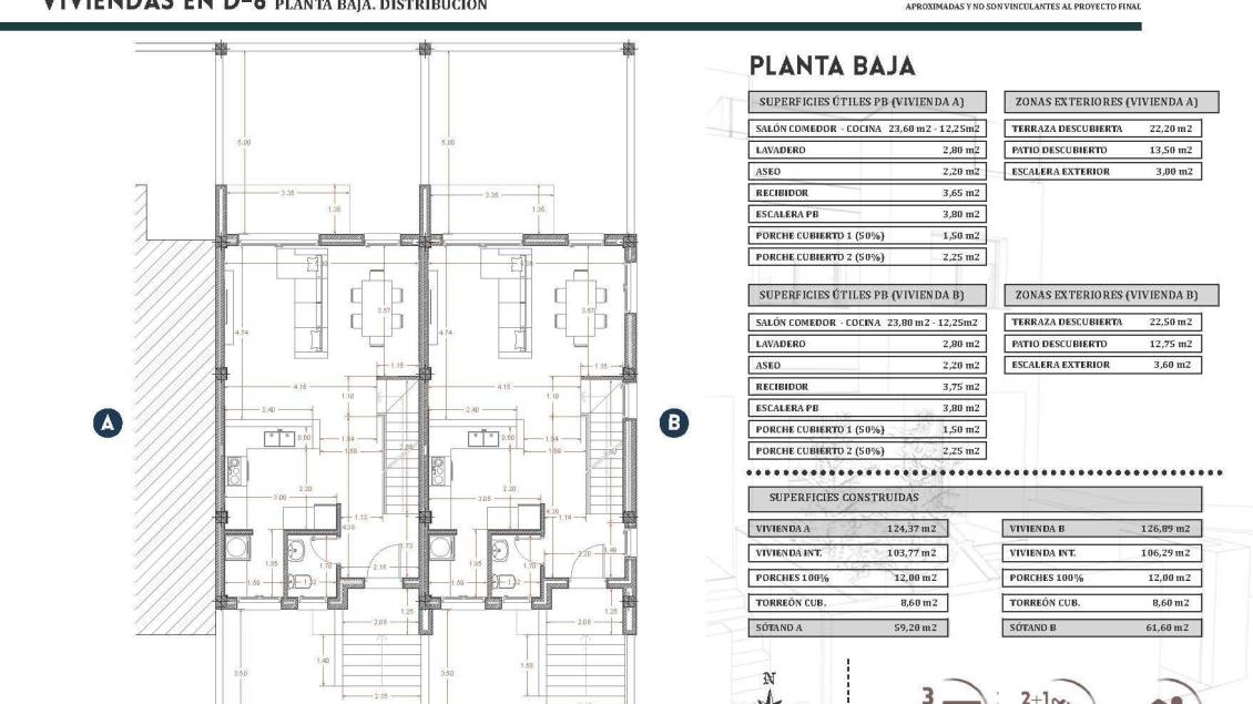 Promoción con tan solo 2 viviendas adosadas de obra nueva en Bigastro. Cada vivienda consta de sótano para garaje de 59m2, planta baja con salón-cocina, aseo y 2 terrazas (frontal y trasera), planta primera con 3 dormitorios y 2 baños (uno de ellos ensuite) y 1 terraza y planta azotea con solarium de unos 40m2. Puerta de entrada blindada, agua caliente por aerotermia, placa solar fotovoltaica, persianas eléctricas en salón y dormitorios, pre instalación de aire acondicionado por conductos y puerta de garaje motorizada. Tienen acceso a la piscina comunitaria de la urbanización a la que pertenecen estas viviendas. Ubicación privilegiada con excelentes conexiones Bigastro es una encantadora localidad de la comarca de la Vega Baja, conocida por su ambiente tranquilo, sus servicios locales y sus excelentes conexiones de transporte. Desde esta zona residencial, los residentes pueden llegar fácilmente a Centro de Bigastro 0,5 km Orihuela 5 km Playas de Guardamar del Segura 15 km Centro Comercial Zenia Boulevard 20 km Aeropuerto Internacional de Alicante 48 km Hospital Vega Baja a 10 km La autopista AP 7 proporciona un rápido acceso a Alicante, Murcia y las localidades costeras de los alrededores, lo que convierte a Bigastro en un lugar ideal tanto para vivir como para desplazarse al trabajo. Una zona en crecimiento con todos los servicios esenciales Bigastro cuenta con supermercados, colegios, instalaciones deportivas, parques y una gran variedad de tiendas y restaurantes locales. Su combinación de comodidad, entorno tranquilo y excelentes conexiones lo ha convertido en una opción residencial cada vez más popular tanto para los compradores locales como para los internacionales. Asegúrese hoy mismo su nueva vivienda en Bigastro Tanto si busca un moderno refugio vacacional como una cómoda residencia para todo el año, este nuevo proyecto de construcción en Bigastro es una oportunidad que no debe dejar pasar. Póngase en contacto con nosotros ahora para obtener más información o concertar una visita.
