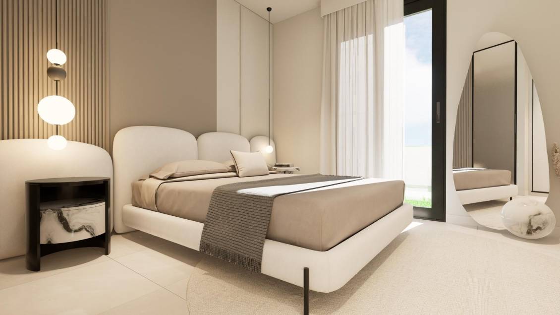 Bungalows de nueva construcción con jardín o solárium cerca de la playa en Pilar de la Horadada Modernas viviendas mediterráneas diseñadas para el confort Descubra este exclusivo complejo residencial de nueva construcción en Pilar de la Horadada, que ofrece bungalows contemporáneos situados a menos de 2 km de la playa. Diseñadas para combinar confort, estilo y funcionalidad, estas viviendas son ideales para vivir todo el año, pasar las vacaciones o como una inteligente inversión en la Costa Blanca. La promoción ofrece la posibilidad de elegir entre bungalows en planta baja con jardín privado y bungalows en la planta superior con solárium privado en la azotea. Cada propiedad está cuidadosamente diseñada para maximizar la vida al aire libre y aprovechar al máximo el clima mediterráneo. Amplias propiedades de 2 dormitorios con acabados de alta calidad Cada bungalow cuenta con 2 dormitorios y 2 baños, uno de ellos en suite, además de una plaza de aparcamiento privada en el garaje subterráneo. Las viviendas están construidas con materiales de calidad y acabados modernos que garantizan la eficiencia energética y la durabilidad. Las características principales incluyen: Preinstalación de aire acondicionado por conductos Carpintería exterior de aluminio con doble acristalamiento y persianas motorizadas Puerta de entrada de seguridad para mayor tranquilidad Sistema aerotérmico para una producción eficiente de agua caliente Armarios empotrados en todos los dormitorios Baños totalmente equipados con muebles y mamparas de ducha Estas especificaciones proporcionan una vivienda cómoda y práctica, adecuada para todas las estaciones. Comunidad privada con piscina y jardines paisajísticos El complejo residencial es privado y seguro, con hermosos jardines comunitarios y una gran piscina comunitaria. Esto crea un ambiente agradable y relajante donde los residentes pueden descansar y disfrutar del excelente clima. Situado a las afueras del centro de la ciudad, la urbanización permite a los residentes ir andando a supermercados, restaurantes, bares, colegios y servicios esenciales sin necesidad de utilizar el coche. Excelente ubicación cerca de playas y servicios Pilar de la Horadada es una encantadora localidad española situada en el extremo sur de la Costa Blanca, conocida por su animado ambiente, sus tiendas locales, sus plazas tradicionales y su acogedora comunidad. Las playas de arena de Torre de la Horadada y Mil Palmeras están a solo 2 km y ofrecen arena fina y dorada, un pintoresco paseo marítimo y un puerto deportivo. La zona también es ideal para practicar ciclismo, senderismo y deportes al aire libre. Distancias a puntos de interés clave Lo Romero Golf 5 km La Zenia Boulevard 15 km Aeropuerto de Murcia Corvera 40 km Aeropuerto de Alicante 55 km Puerto deportivo de Torre de la Horadada 3 km Reserve hoy mismo su nueva vivienda No pierda esta oportunidad de adquirir un bungalow a estrenar cerca de la playa en una de las zonas más cotizadas de la Costa Blanca. Póngase en contacto con nosotros hoy mismo para obtener más información y concertar una visita.