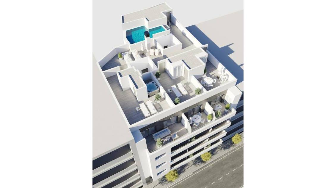 Apartamentos de nueva construcción en Torrevieja A solo 400 m de la Playa del Cura Ubicación privilegiada en el corazón de Torrevieja Descubra estos apartamentos y áticos a estrenar en una de las zonas más cotizadas de Torrevieja, a solo 400 m de la Playa del Cura y a 150 m del paseo marítimo. Situado en el centro de la ciudad, este animado barrio ofrece todos los servicios esenciales a poca distancia, incluyendo supermercados, tiendas, restaurantes, cafeterías y transporte público. Torrevieja es una conocida ciudad costera de la Costa Blanca, famosa por su clima mediterráneo templado, su animado ambiente y su estilo de vida junto al mar durante todo el año. Apartamentos modernos con distribuciones espaciosas Esta exclusiva promoción nueva consta de solo 12 apartamentos y áticos de 2 o 3 dormitorios, diseñados para ofrecer comodidad, funcionalidad y estilo contemporáneo. Los apartamentos de las plantas intermedias cuentan con amplias terrazas, mientras que los áticos disfrutan de un solárium privado adicional, ideal para tomar el sol o comer al aire libre. Todas las viviendas incluyen una cocina abierta conectada con el salón-comedor, lo que crea interiores luminosos y acogedores. Los dormitorios cuentan con armarios empotrados y los baños están totalmente equipados con muebles, espejos y mamparas de ducha. Hay plazas de aparcamiento subterráneo y trasteros opcionales disponibles con un coste adicional. Acabados de calidad y características de eficiencia energética Los apartamentos están construidos con materiales de alta calidad y un fuerte enfoque en la eficiencia energética. La carpintería exterior de aluminio incluye tecnología de rotura de puente térmico y doble acristalamiento para el aislamiento térmico y acústico. Las persianas motorizadas añaden comodidad y seguridad. Cada vivienda cuenta con preinstalación de aire acondicionado y calefacción por conductos, puertas de entrada reforzadas y puertas interiores lacadas en blanco. El agua caliente se produce mediante un sistema aerotérmico, lo que reduce el consumo de energía y mejora la sostenibilidad. Solárium en la azotea con piscina comunitaria Los residentes pueden disfrutar de un solárium exclusivo en la azotea con piscina comunitaria, accesible por ascensor o escaleras. Esta zona privada es perfecta para relajarse, tomar el sol y disfrutar de las vistas panorámicas de la ciudad. Ofrece un refugio tranquilo sobre las animadas calles de Torrevieja y añade un valor significativo a la promoción. Estilo de vida y alrededores de Torrevieja Torrevieja es conocida por su extenso litoral, sus playas de arena y sus emblemáticas salinas. El Parque Natural de las Lagunas de La Mata y Torrevieja se encuentra a unos 5 km y ofrece rutas de senderismo y paisajes únicos. Varios campos de golf, como Villamartin Golf y Las Colinas Golf, se encuentran a entre 12 y 18 km. El puerto deportivo y el puerto de Torrevieja están a aproximadamente 1 km. El aeropuerto de Alicante está a unos 45 km y el aeropuerto internacional de Murcia a unos 65 km, ambos con excelentes conexiones europeas. Su hogar en la costa le espera No pierda esta oportunidad de adquirir un moderno apartamento de nueva construcción cerca de la playa en Torrevieja. Póngase en contacto con nosotros hoy mismo para obtener más información o concertar una visita privada.