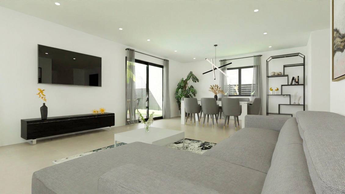 VILLAS DE OBRA NUEVA EN MONFORTE DEL CID Villas de obra nueva en Monforte del Cid, con el campo de golf a sólo 3 minutos de casa y justo al lado de las ciudades de Alicante y Elche, donde encontrará una amplia oferta cultural, gastronómica, de ocio y por supuesto de costa. Las playas de arena dorada del Mediterráneo a un paso de tu nuevo hogar, un espacio donde disfrutar de días de sol y mar en cualquier momento. Villas situadas a 3 minutos del centro deportivo del campo de golf Alenda Golf, lo que la convierte en la ubicación perfecta para disfrutar de la paz de una urbanización tranquila pero tener todos los servicios al lado de casa (A tan sólo 12 minutos del Aeropuerto de Alicante-Elche). La urbanización es una comunidad que reúne lo mejor de la vida moderna y la tranquilidad del entorno natural (Sin gastos de comunidad). Descubra la elegancia y el confort de este precioso chalet independiente de 108m2 o 128m2 (posibilidad de dos tamaños de vivienda), diseñado para ofrecerle un estilo de vida excepcional, todo en planta baja. Situada en la prestigiosa Urbanización, esta propiedad le ofrece una experiencia de vida única y de calidad. En parcelas desde 618m2, proporcionándole un amplio espacio para disfrutar tanto del interior como del exterior. Disfrute de la privacidad que le ofrece este chalet independiente, donde podrá relajarse en su propio jardín, crear un oasis de tranquilidad, o incluso añadir una piscina para disfrutar de los cálidos días de verano. La casa se distribuye en dos grandes zonas: Zona de día: Donde encontramos un amplio salón comedor con cocina abierta tipo office (muebles de cocina incluidos) que conecta con el amplio y moderno porche a través de sus dos grandes ventanales, dando paso a la zona exterior ajardinada y por qué no... a la piscina. La luz inunda cada rincón gracias a los grandes ventanales del salón, que se abren al porche, un espacio moderno y funcional que invita a disfrutar al máximo del aire libre. Imagina pasar las tardes con la familia y los amigos, rodeado de un entorno sereno y natural. Como espacio extra, cuenta con una zona de lavandería estratégicamente situada en la distribución de la vivienda donde será muy fácilmente accesible desde cualquier punto de la casa. Zona de noche o descanso: En esta zona encontramos 3 dormitorios. El dormitorio principal cuenta con un amplio vestidor y baño en suite. Además, un segundo baño para dar servicio al resto de dormitorios y vivienda. Aquí no sólo encontrará una comunidad residencial, sino un lugar donde la naturaleza y la elegancia se entrelazan para proporcionarle un estilo de vida inigualable. Ya sea para establecer su residencia permanente, para disfrutar de una casa de vacaciones o si desea invertir en su futuro, esta villa es perfecta para usted. Urbanización privada cercana a las principales ciudades de la provincia de Alicante, a 15 minutos en coche de Elche y Alicante, así como del aeropuerto y de las mejores playas. La urbanización se encuentra en un entorno tranquilo cerca del campo de golf Alenda en Monforte del Cid.