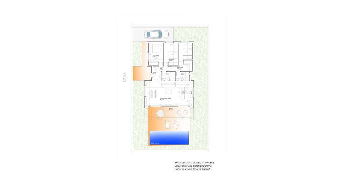 129 m2 · 603 m2 terreno · 3 Habitaciones · 2 Baños · Piscina