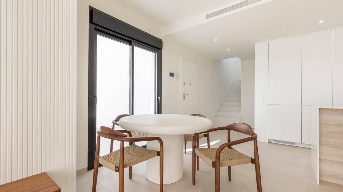 Villas de nueva construcción con piscina privada cerca de La Serena Golf en Los Alcázares Exclusiva promoción boutique cerca del campo de golf y la playa Descubra esta exclusiva promoción residencial de tan solo ocho villas independientes de nueva construcción, con una ubicación ideal entre La Serena Golf y la encantadora localidad costera de Los Alcázares. Situadas a solo 1500 metros de las playas del Mar Menor, estas viviendas ofrecen la combinación perfecta de golf, mar y estilo de vida mediterráneo. La ubicación permite a los residentes disfrutar de un acceso a pie tanto al campo de golf como al centro de la localidad, donde se puede encontrar una amplia variedad de restaurantes, tiendas, cafeterías y servicios esenciales. Los Alcázares es conocida por su ambiente relajado, su largo paseo marítimo y sus aguas cálidas y poco profundas, lo que la convierte en un destino popular tanto para turistas como para residentes permanentes. Villas modernas con distribuciones flexibles Estas villas contemporáneas están disponibles en configuraciones de dos o tres dormitorios, con opciones de diseño de una sola planta o de dos plantas. Construidas en parcelas privadas a partir de 200 m², cada vivienda está diseñada para maximizar el espacio, el confort y la luz natural. Todas las villas cuentan con piscina privada y aparcamiento en la parcela, lo que crea un entorno exterior privado y funcional, ideal para disfrutar del clima soleado durante todo el año. Las villas de una sola planta incluyen un solárium privado en la azotea, perfecto para tomar el sol o relajarse con vistas despejadas. Las villas de dos plantas ofrecen amplias terrazas en la planta superior, lo que proporciona zonas de estar al aire libre adicionales. Espacios diáfanos y conexión con el exterior La distribución interior se centra en espacios diáfanos, con luminosas zonas de salón y comedor perfectamente conectadas con modernas cocinas. Los grandes ventanales permiten que la luz natural inunde los espacios, al tiempo que ofrecen acceso directo a las terrazas y a las zonas de piscina. Este diseño potencia el estilo de vida que combina el interior y el exterior, característico de la Costa Cálida, lo que hace que estas villas sean ideales tanto para la vida cotidiana como para recibir invitados. Acabados de alta calidad y prestaciones modernas Las villas se han construido siguiendo unos altos estándares, utilizando materiales de calidad y marcas de confianza. Entre las prestaciones se incluyen una puerta de entrada de seguridad reforzada de DIERRE, armarios empotrados y cocinas modernas equipadas con electrodomésticos BOSCH. Otras especificaciones incluyen un sistema aerotérmico para agua caliente, persianas motorizadas y una puerta de acceso para vehículos automatizada. Se ha prestado especial atención a cada detalle para ofrecer comodidad, eficiencia y practicidad. Ubicación privilegiada en la Costa Cálida Los Alcázares ofrece una ubicación excelente con fácil acceso a playas, campos de golf y conexiones de transporte. Las playas del Mar Menor están a solo 1,5 km, mientras que el campo de golf La Serena se encuentra a poca distancia a pie. Otras distancias clave incluyen el aeropuerto de Murcia-Corvera a 35 km, Cartagena a 25 km, la ciudad de Murcia a 50 km y el aeropuerto de Alicante a 90 km. Oportunidad ideal de inversión o vivienda vacacional Estas villas de nueva construcción ofrecen una oportunidad única de adquirir una propiedad moderna en una ubicación privilegiada, cerca tanto del mar como del golf. Póngase en contacto con nosotros hoy mismo para obtener más información o concertar una visita y asegurarse su nueva villa en Los Alcázares.