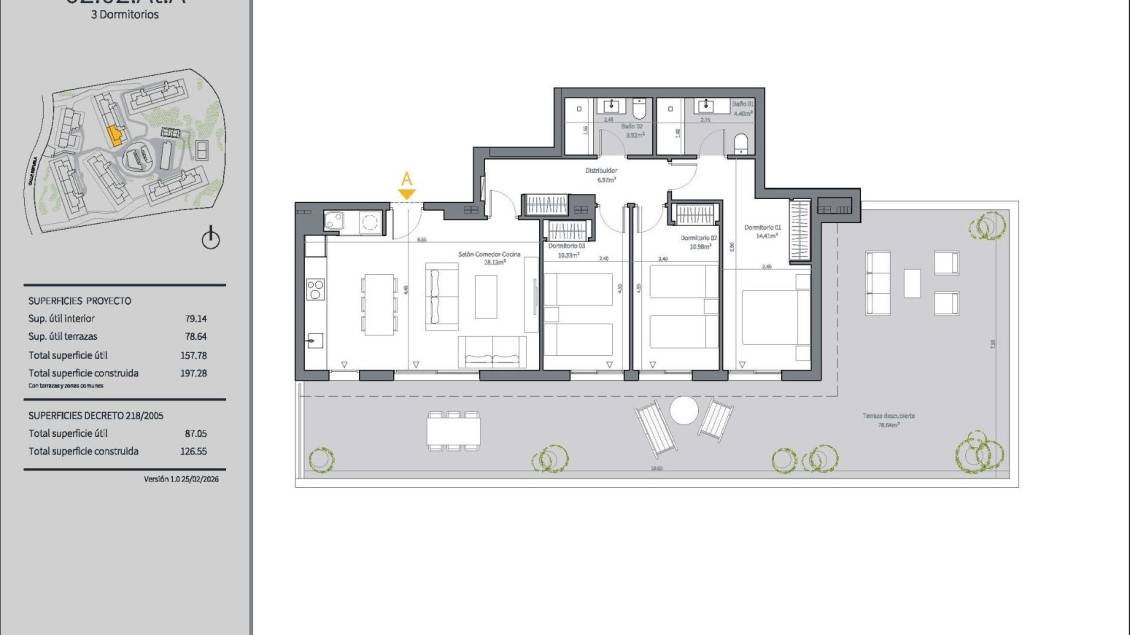 126 m2 · 3 Habitaciones · 2 Baños · Piscina