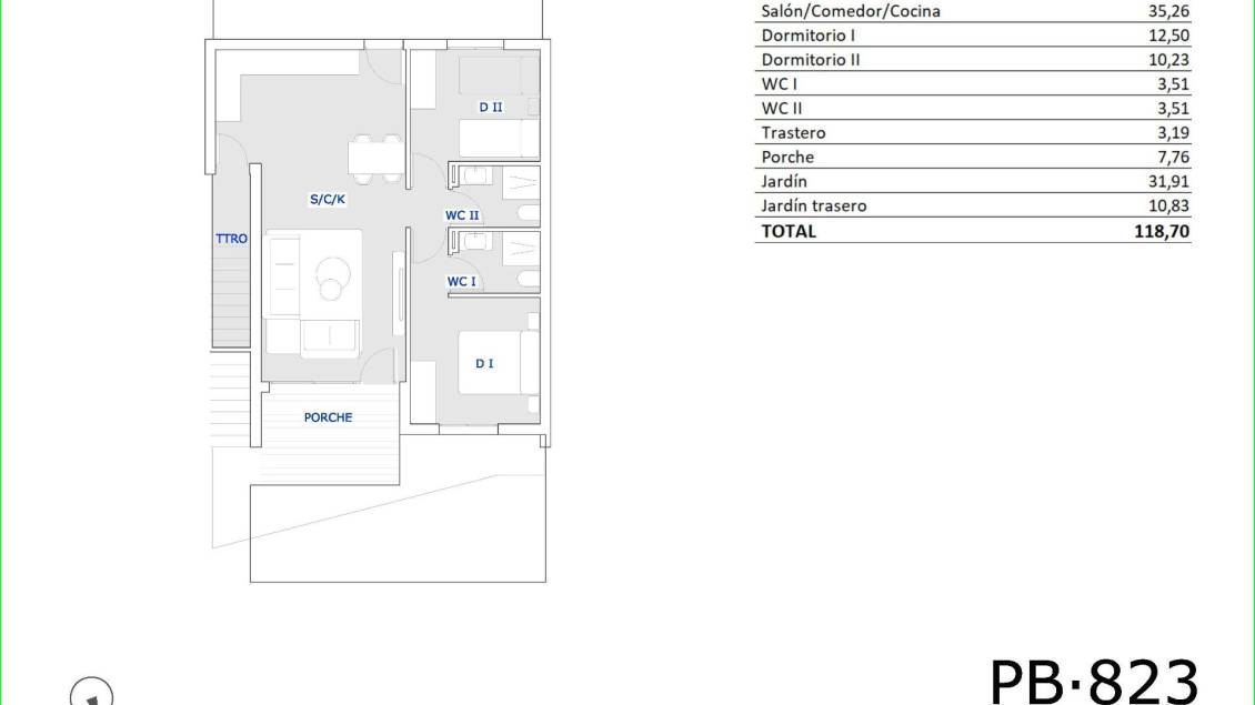 70 m2 · 41 m2 terreno · 2 Habitaciones · 2 Baños · Piscina