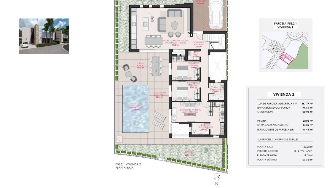 VILLAS NEUVES DANS UN COMPLEXE PRIVÉ FERMÉ DANS LA PROVINCE DE MURCIE Nouvelles villas dans un complexe privé dans la région de Murcia, entouré d'excellents terrains de golf et à seulement 10 minutes des plages de sable de la mer de Mar Menor. Les villas sont construites sur 2 étages et ont 3 chambres à coucher, 2 salles de bains et une toilette d'invité et sont conçues avec un style contemporain et un concept ouvert, composé d'une cuisine entièrement équipée et d'un salon-salle à manger, des placards, un jardin privé avec la piscine et un espace de stationnement hors route, un solarium privé. Grande villa de 146m² plus un sous-sol très utile de 120m² fini avec des murs lisses, des points d'eau et électriques. Ceci offre l'opportunité parfaite d'utiliser comme logement supplémentaire, bureau, salle de gym, salle de cinéma, salle de jeux pour enfants..... Située dans un complexe privé fermé, avec une entrée principale et une sécurité 24h/24. Le complexe est conçu autour d'un impressionnant espace vert de 126.000 m2. Il comprend des sentiers pédestres et des pistes cyclables, des installations sportives, des courts de paddle et de tennis, un mini-golf, des jardins, des parcs pour chiens, des zones de loisirs, un clubhouse..... Dans la zone centrale se trouve également le joyau de la station, un lac artificiel cristallin de près de 17 000 m2 de surface d'eau, entouré de plages de sable blanc et de palmiers, apportant un morceau des Caraïbes dans la région de Murcie. Il y a 2 îles dans le lac, l'une d'entre elles a son propre bar, il y a aussi des "Chiringuitos de plage" répartis autour du lac. La station est stratégiquement située à moins de 4 km de la plage et de la ville de Los Alcázares, où vous pouvez pratiquer divers sports nautiques, entourée de plusieurs terrains de golf et de la ville de Cartagena à moins de 15 minutes en voiture et à 22 km de l'aéroport de Murcie, ayant ainsi une large offre culturelle, gastronomique et sportive à portée de main.