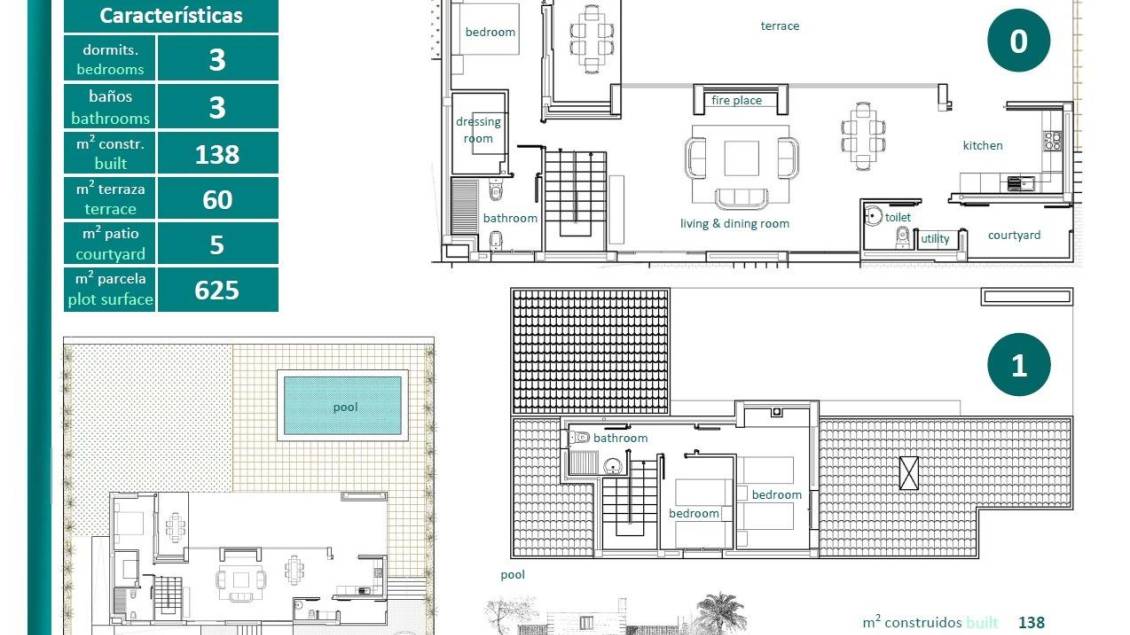 Élégantes villas individuelles avec piscine privée à Peraleja Golf Resort - Costa Cálida Maisons individuelles de style méditerranéen dans une communauté fermée avec golf 20 villas individuelles avec 6 modèles au choix, comprenant 2, 3 ou 4 chambres et 1, 2 ou 3 étages sur des terrains de 375 à 800 m². Certaines unités disposent d'un solarium sur le toit. Situées dans le prestigieux Peraleja Golf Resort, dans la région de Murcie, au sud de l'Espagne. Ces maisons méditerranéennes modernes sont situées sur de grands terrains, chacune avec piscine privée, jardin et parking. Conçues avec des toits inclinés et des matériaux naturels tels que le bois et la pierre, ces maisons s'intègrent parfaitement dans le paysage environnant, tout en offrant des intérieurs élégants et intemporels. Une vie confortable avec des finitions haut de gamme Chaque maison comprend : Cuisine américaine entièrement équipée avec appareils électroménagers Salon-salle à manger lumineux avec une cheminée à bois accueillante Climatisation centrale et chauffage par radiateurs à gaz Porte d'entrée blindée et porte d'accès motorisée pour les véhicules Piscine privée (3,5 x 5,5 m) avec douche extérieure Points d'eau et éclairage extérieur Jardin entièrement paysager prêt à être profité Ces propriétés ont été soigneusement conçues par un architecte de renom, alliant des lignes élégantes à des textures naturelles, créant un environnement unique et harmonieux au sein d'une communauté fermée et sécurisée. La vie à Peraleja Golf Resort - Nature et sécurité Les maisons sont situées dans le Peraleja Golf Resort, qui dispose d'un portail de sécurité 24h/24, d'un piano-bar et d'un club-house avec restaurant gastronomique. Le complexe est entouré de zones naturelles protégées où des circuits de randonnée, de jogging et de vélo sont en cours d'aménagement pour les résidents. Le parcours de golf 18 trous, conçu à l'origine par le légendaire Severiano Ballesteros, est en cours de rénovation et sa réouverture est prévue pour fin 2025. Certaines maisons et le club social bénéficient d'une vue lointaine sur la mer. Emplacement pratique à proximité des plages et des villes Ce complexe paisible offre un excellent accès à des lieux clés : Villes de Sucina et Avileses - 3-5 km Plages de la Mar Menor - 20 km (20 min en voiture) Ville de Murcie - 25 km (20 min en voiture) Aéroport de Murcie (RMU) - 25 km (15 min en voiture) Aéroport d'Alicante (ALC) - 80 km (45 min en voiture) Centre commercial La Zenia Boulevard - 35 km Profitez du charme de la Costa Cálida Situé à proximité de la ville traditionnelle espagnole de Sucina, les résidents peuvent profiter des commerces locaux, des restaurants et du charme authentique, tout en restant à proximité de la côte et de la vie animée de la ville. Cette région est devenue de plus en plus populaire auprès des acheteurs internationaux pour sa qualité de vie, ses bonnes infrastructures, son climat merveilleux tout au long de l'année et son accès à la nature et à la mer. Contactez-nous dès aujourd'hui pour acquérir la villa de vos rêves à Peraleja Golf et commencez à profiter de la vie sur la Costa Cálida.