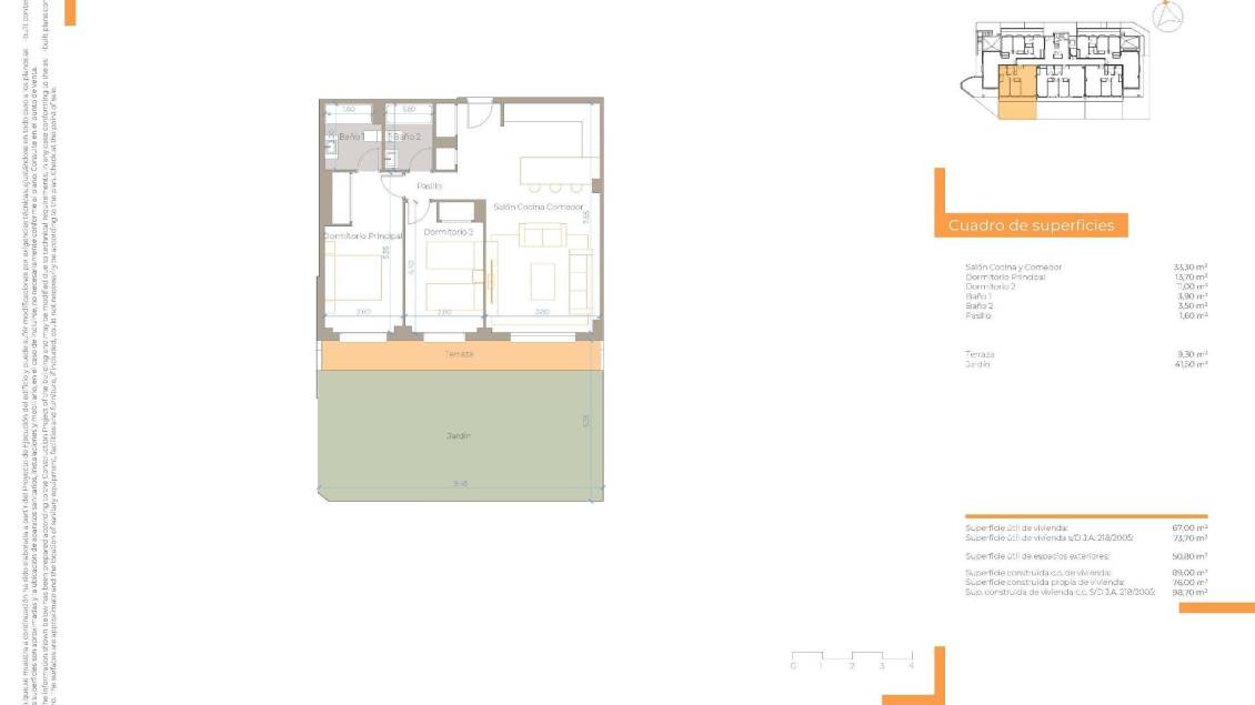 Nouvelle construction résidentielle à El Chaparral, Mijas Une vie moderne et fonctionnelle au cœur de la Costa del Sol Découvrez cet exceptionnel complexe résidentiel de construction neuve à El Chaparral, Mijas, conçu pour une vie confortable et moderne. Cette communauté fermée propose une sélection de 46 maisons de 2 et 3 chambres, réparties sur deux blocs distincts. Chaque résidence a été conçue avec soin et avec des matériaux de première qualité, garantissant un niveau élevé de qualité et de confort. Des maisons spacieuses aux caractéristiques étonnantes Nombre de ces logements sont dotés de terrasses spacieuses offrant une vue imprenable sur la mer, tandis que les unités situées au rez-de-chaussée sont dotées de vastes jardins privés, parfaits pour profiter de l'environnement naturel. Chaque propriété comprend un garage et un local de rangement, ce qui ajoute à la commodité de cette offre déjà impressionnante. Des équipements collectifs exceptionnels Le complexe offre une variété d'espaces communs conçus pour améliorer votre style de vie. Détendez-vous au bord de la piscine extérieure, profitez des jardins magnifiquement aménagés ou détendez-vous dans l'aire de repos. Ces espaces communs sont parfaits pour passer du temps avec la famille et les amis ou simplement pour se détendre en toute tranquillité. Emplacement stratégique à Mijas Costa Ce projet est idéalement situé à Mijas Costa, une zone prospère connue pour ses excellentes options de loisirs et de services, y compris les installations sportives, les écoles et les centres de soins de santé. L'emplacement permet d'accéder facilement aux principales attractions : Cabo Pino et Marina Beach : Moins de 5 km (moins de 5 minutes en voiture). Fuengirola : À moins de 10 km (environ 10 minutes en voiture). Aéroport de Malaga : Situé à seulement 30 km, il permet des déplacements rapides et faciles. Terrains de golf à proximité : Plusieurs options dans un rayon de 10 à 15 km, parfaites pour les amateurs de golf. Centres commerciaux : Les principales destinations commerciales sont accessibles en moins de 15 minutes. Durabilité et efficacité énergétique Ce projet a été conçu dans une optique de développement durable, avec des systèmes d'efficacité énergétique tels que le chauffage aérothermique et des fenêtres à double vitrage pour réduire la consommation d'énergie. Le bâtiment est classé B, ce qui permet de réduire les émissions de CO2 et de réaliser des économies d'énergie. Découvrez le meilleur de Mijas Nichée entre la mer et les montagnes, Mijas offre un mélange unique de plages ensoleillées et d'une atmosphère résidentielle charmante. Avec ses hivers doux et ses étés chauds, cet endroit est idéal pour vivre tout au long de l'année ou comme lieu de vacances. Ne manquez pas cette opportunité ! Réalisez votre rêve de vivre sur la Costa del Sol. Contactez-nous dès aujourd'hui pour planifier une visite et obtenir votre nouvelle maison dans ce développement exclusif.