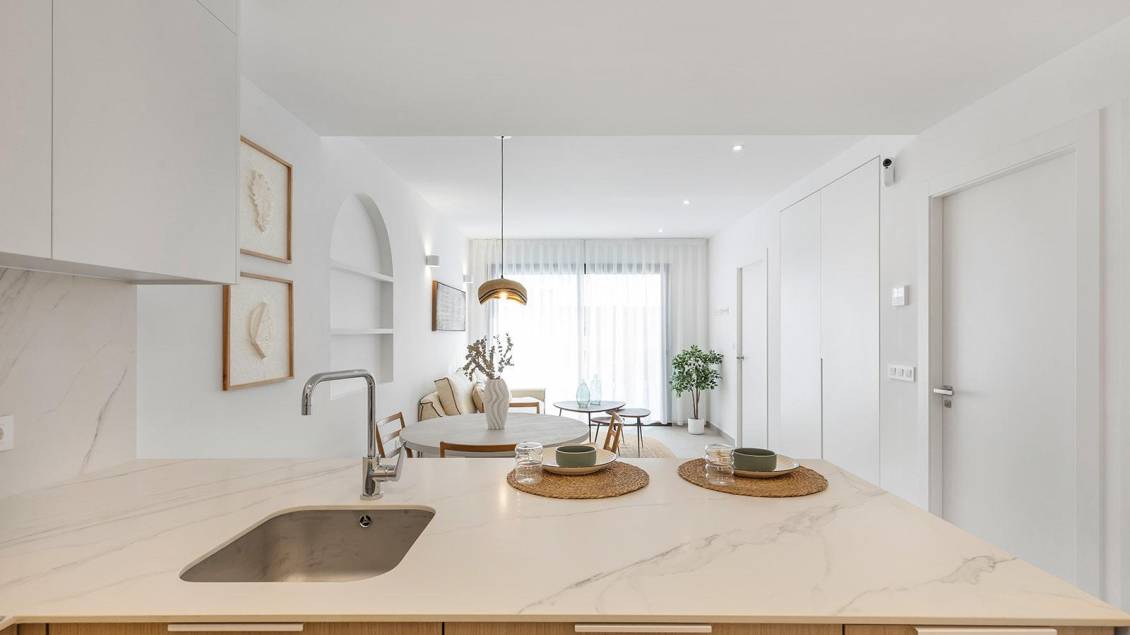 Nouveau complexe résidentiel près du Serena Golf et du Mar Menor à Los Alcazares Une vie moderne en bord de mer sur la Costa Calida Découvrez ce nouveau complexe résidentiel attrayant situé à Los Alcazares, l'une des villes balnéaires les plus populaires de la Costa Calida. Situé à seulement 500 mètres des plages du Mar Menor et à quelques pas du centre-ville, ce complexe offre une excellente combinaison entre vie en bord de mer, environnement golfique et commodités quotidiennes. Los Alcazares est bien connu pour son atmosphère détendue, ses longues promenades, ses eaux chaudes et peu profondes et son large éventail de restaurants, de magasins et de services ouverts toute l'année. Appartements contemporains conçus pour le confort Le complexe se compose de 29 logements modernes de 2 ou 3 chambres, conçus avec des lignes architecturales épurées et des finitions de haute qualité. Les acheteurs peuvent choisir entre des appartements au rez-de-chaussée avec jardin et terrasse privés, des logements à l'étage intermédiaire avec terrasses spacieuses ou des penthouses avec terrasse privée et solarium sur le toit offrant une vue dégagée. La plupart des propriétés bénéficient d'une vue sur le Serena Golf et la Mar Menor, créant un cadre de vie calme et agréable. Tous les logements sont conçus pour maximiser la lumière naturelle et la fonctionnalité, ce qui les rend idéaux comme résidence permanente, maison de vacances ou investissement immobilier. Caractéristiques de haute qualité et espaces communs Chaque propriété comprend une place de parking privée et un débarras. Les spécifications sont conçues pour offrir confort et efficacité énergétique, notamment des fenêtres à double vitrage avec rupture thermique, la pré-installation de la climatisation gainable, un système aérothermique pour l'eau chaude sanitaire, des volets électriques dans les chambres et un ensemble complet d'éclairage intérieur et extérieur. Les salles de bains sont livrées entièrement équipées avec des meubles, un miroir et une paroi de douche. Les résidents peuvent profiter d'espaces communs attrayants avec des jardins paysagers et une piscine commune, parfaits pour se détendre et profiter du climat méditerranéen. Certains immeubles sont équipés d'ascenseurs pour plus de commodité. Emplacement privilégié entre golf et mer Ce complexe résidentiel bénéficie d'un emplacement privilégié à côté du Serena Golf, l'un des terrains de golf les plus renommés de la région, et à quelques pas des eaux calmes du Mar Menor. La région est idéale pour la natation, la voile, le paddleboard et d'autres sports nautiques tout au long de l'année. Les distances clés comprennent les plages de Mar Menor à 0,5 km, Serena Golf juste à côté du complexe, le centre-ville de Los Alcazares à 2 km, Carthagène à 22 km et la ville de Murcie à 40 km. L'aéroport de Murcie Corvera est à environ 30 km et l'aéroport d'Alicante à environ 90 km. Une maison idéale ou une opportunité d'investissement Avec son emplacement exceptionnel, son design moderne et sa proximité avec le golf et la mer, ce nouveau complexe résidentiel à Los Alcazares offre une opportunité de style de vie exceptionnelle sur la Costa Calida. Contactez-nous dès aujourd'hui pour obtenir plus d'informations ou pour organiser une visite privée et acquérir votre nouvelle maison près de la Mar Menor.