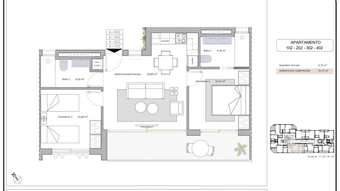 Appartements touristiques près de la plage à Lo Pagán-San Pedro del Pinatar : une opportunité d'investissement sur la Costa Cálida Emplacement privilégié en bord de mer à Lo Pagán Découvrez ce nouveau complexe de 44 appartements touristiques entièrement meublés situé à Lo Pagán, San Pedro del Pinatar, l'une des destinations les plus prisées de la Costa Cálida. À seulement 800 mètres de la plage, ce complexe résidentiel offre l'équilibre parfait entre détente, art de vivre en bord de mer et potentiel d'investissement. La région est réputée pour sa proximité avec le Mar Menor et la mer Méditerranée, offrant des eaux calmes, des ports de plaisance et un large éventail de sports nautiques. Lo Pagán dispose également d'une promenade animée avec des restaurants, des cafés et des boutiques, ainsi que des célèbres bains de boue naturels qui attirent des visiteurs toute l'année. Des appartements modernes conçus pour le confort et la flexibilité Le complexe propose une variété d'agencements adaptés à différents besoins. Les acheteurs peuvent choisir entre des studios spacieux avec 1 salle de bains et une terrasse, ou des logements plus grands avec 2 chambres et 2 salles de bains, dont une attenante, tous dotés de terrasses extérieures privées. Chaque appartement a été soigneusement conçu pour optimiser le confort, la fonctionnalité et la lumière naturelle. Tous les logements sont livrés entièrement meublés et équipés d'appareils électroménagers, ce qui les rend prêts à être occupés ou loués immédiatement. Les intérieurs reflètent un style moderne avec des finitions de qualité, garantissant un cadre de vie confortable et élégant à quelques minutes de la mer. Équipements haut de gamme et habitat intelligent Ces appartements comprennent une climatisation centralisée entièrement installée, un système aérothermique pour l'eau chaude et des salles de bains entièrement équipées avec mobilier, miroirs et parois de douche. De plus, l'immeuble et les logements individuels bénéficient de systèmes de serrures intelligentes, renforçant ainsi la sécurité et le confort. Certains logements comprennent également des places de parking souterraines ou extérieures et des débarras, selon la propriété. Des équipements de style resort pour la détente et le bien-être Les résidents et leurs invités peuvent profiter d’excellentes installations communes, notamment d’une piscine sur le toit avec solarium, parfaite pour se détendre sous le soleil méditerranéen. Le complexe dispose également d’une salle de sport et d’un café sur place, créant un environnement confortable et convivial, idéal aussi bien pour les vacances que pour les séjours de longue durée. Excellente connectivité et points d’intérêt à proximité Plage de Lo Pagán 0,8 km Mar Menor 0,8 km Centre de San Pedro del Pinatar 2 km Centre commercial Dos Mares 3 km Golf de Lo Romero 10 km Aéroport international de Murcie 35 km Aéroport d'Alicante 75 km Port de plaisance de San Pedro 2 km Un investissement intelligent avec gestion locative Ces appartements touristiques offrent une excellente opportunité d'investissement, avec une TVA déductible et une société de gestion professionnelle qui s'occupe des locations lorsque le bien n'est pas utilisé. Cela garantit une expérience de propriété sans tracas et des rendements locatifs attractifs. Assurez-vous une propriété sur la Costa Cálida Que vous recherchiez une résidence secondaire, un investissement locatif ou les deux, ces appartements à Lo Pagán offrent emplacement, qualité et rentabilité. Contactez-nous dès aujourd'hui pour plus d'informations ou pour organiser une visite et vous assurer votre nouvelle propriété en bord de mer.