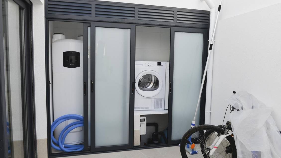 Moderne nybyggede villaer i San Pedro del Pinatar med privat basseng Elegant design og førsteklasses kvalitet Velkommen til den andre fasen av et eksklusivt prosjekt i San Pedro del Pinatar, der modernitet møter funksjonalitet. Disse 12 tomannsboligene er utformet med minimalistisk design og høy kvalitet, og tilbyr en sofistikert og stilfull boopplevelse. Hver villa har 3 romslige soverom, 3 bad og et privat basseng, i tillegg til terrasser og en privat hage. Dette er det perfekte fristedet for deg som søker ro, privatliv og uovertruffen komfort. Gjennomtenkt designede hjem for moderne livsstil Disse nybygde villaene har et åpent kjøkken som er koblet til en lys stue, noe som skaper et sømløst rom for familieliv og underholdning. Viktige funksjoner inkluderer: 3 soverom med innebygde garderober. 3 bad med dusjvegger i gjennomsiktig glass for et elegant utseende. Privat basseng og hage, perfekt for avslappende utendørsaktiviteter. Terrasser i første etasje og et solarium på taket (ekstrautstyr) for soling. Parkeringsplass på tomten. Store vinduer i stuen gir direkte tilgang til bassengområdet og sørger for et naturlig lysinnslipp. Energieffektive tillegg som solcellepaneler og forhåndsinstallert luftkondisjonering med kanaler sørger for moderne komfort og bærekraft. Balay-apparater (induksjonstopp, stekeovn, mikrobølgeovn, avtrekksvifte, kjøleskap, integrert oppvaskmaskin og vaskemaskin) gjør det enkelt å flytte inn. Førsteklasses beliggenhet i San Pedro del Pinatar San Pedro del Pinatar ligger ved den vakre Mar Menor- og Middelhavskysten, og er en drømmedestinasjon for vannsportentusiaster og strandelskere. Området er kjent for sine rolige strender, naturlige gjørmebad og livlige marina, og tilbyr aktiviteter året rundt i et mildt klima. Attraksjoner i nærheten av disse villaene inkluderer: Dos Mares kjøpesenter: 5 km (5 minutter med bil). Murcia-Corvera lufthavn: 30 km (30 minutter med bil). Alicante lufthavn: 80 km (1 time med bil). Lokale golfbaner: Ulike alternativer innen 10-15 km. Strender i Lo Pagán: Bare en kort kjøretur på 3 km unna. Nabolaget er godt betjent av skoler, idrettsanlegg, butikker og offentlig transport, noe som gjør det ideelt for både familier og pensjonister. Oppdag ditt drømmehjem i dag Ikke gå glipp av sjansen til å eie en av disse eksklusive villaene i et blomstrende lokalsamfunn. Opplev det beste av kystlivet og gjør San Pedro del Pinatar til ditt nye hjem. Kontakt oss nå for å avtale en visning og sikre deg din del av paradiset!