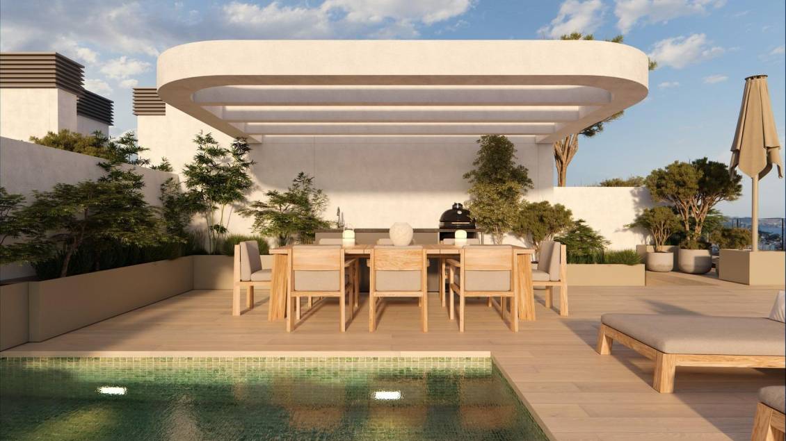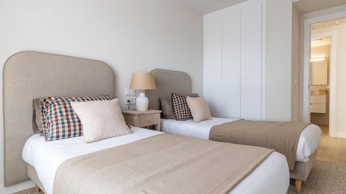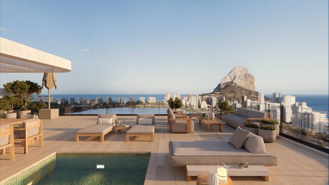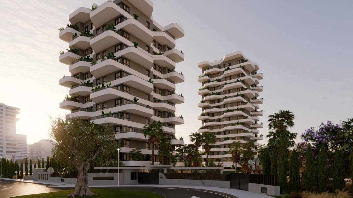 Moderne nybygg i Calpe, bare 450 meter fra Playa del Cantal Roig Et moderne boligkompleks nær sjøen Dette eksklusive boligkomplekset består av 120 nybygde leiligheter med 2 og 3 soverom, fordelt på tre moderne tårn. Komplekset ligger bare 450 meter fra Playa del Cantal Roig, i det fredelige området El Saladar, og tilbyr den perfekte blandingen av kystliv og urbane bekvemmeligheter. Sentrum av Calpe ligger bare noen minutter unna, mens den fantastiske Salinas de Calpe og den ikoniske naturparken Peñón de Ifach skaper en unik naturlig bakgrunn. Havutsikt er tilgjengelig fra tredje etasje og oppover. Førsteklasses fasiliteter for en eksepsjonell livsstil Det inngjerdede boligkomplekset er designet for å maksimere komforten og tilbyr et bredt utvalg av fasiliteter, inkludert svømmebasseng for voksne, barnebasseng, svømmebane, paddle-bane, treningsstudio, sosial klubb, anlagte hager med lekeområder, sykkelparkering og digitale pakkeskap. Sikkerhet og kontrollert tilgang sikres gjennom en concierge-tjeneste. Parkering og boder er inkludert i prisen. Elegante boliger med høykvalitetsfunksjoner Hver leilighet kombinerer moderne design med funksjonelle planløsninger og utmerket beliggenhet. Romslige terrasser står i sentrum og tilbyr den ideelle rammen for å nyte middelhavsklimaet. Boligene har utvendig snekring med termisk isolasjon, motoriserte persienner, pansret inngangsdør, fullt utstyrt kjøkken med hvitevarer, sentral klimaanlegg og aerotermisk varmtvannssystem. Oppdag Calpe og dens utmerkede omgivelser Calpe er en av Costa Blancas mest symbolske kystbyer, kjent for sine strender, nautiske livsstil og rike valencianske arv. Beliggenheten tilbyr uovertruffen tilgang: ca. 80 km til Alicante lufthavn, 12 km til Altea, 25 km til Benidorm og sømløse forbindelser via motorveien A7 og veien N332. Golfentusiaster finner flere golfbaner innen 25 km, mens Real Club Náutico de Calpe og Puerto Blanco Marina ligger mindre enn 3 km unna. Ditt ideelle hjem ved Middelhavet Opplev en ny måte å leve på i Calpe med moderne hjem designet for komfort, natur og avslapning. Kontakt oss i dag for å avtale et besøk. 505
