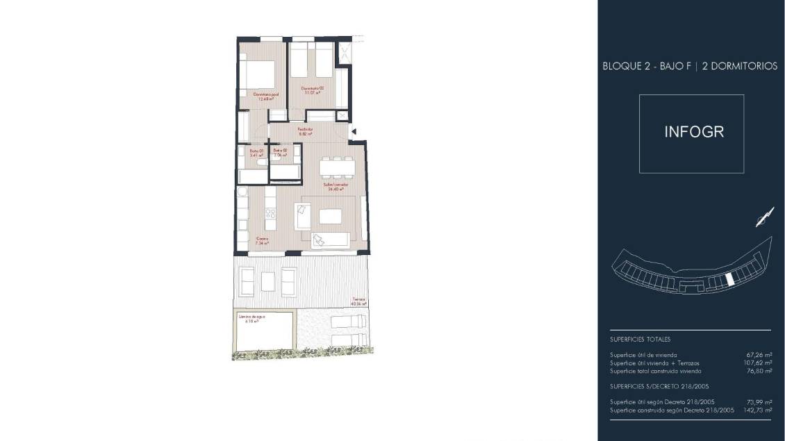 Nybyggede leiligheter i Manilva, Costa del Sol Moderne boligliv i en førsteklasses beliggenhet i Manilva Dette moderne nybygget består av 64 moderne boliger i et av de mest privilegerte boligområdene i Manilva, Malaga. Dette eksklusive prosjektet er designet for kjøpere som søker moderne arkitektur, komfort og den autentiske Costa del Sol-livsstilen, og kombinerer elegant design med fasiliteter av høy kvalitet i et fredelig kystmiljø. Manilva er kjent for sin avslappede atmosfære, vakre strender, vingårder og nærhet til noen av de mest ettertraktede destinasjonene på den vestlige Costa del Sol. Moderne arkitektur og stilige boliger Prosjektet består av to elegante halvmåneformede bygninger, hver med 32 boliger fordelt på fire etasjer: første etasje, andre etasje, tredje etasje og penthouse. Prosjektet tilbyr et utvalg av boliger med 2 og 3 soverom som passer til forskjellige livsstiler. Havutsikt fra utvalgte enheter. Eneboliger i første etasje har private hager og private svømmebassenger, boliger i mellomste etasje har store panoramaterrasser, og penthouse-leiligheter har private solarium med havutsikt og private bassenger. Alle boliger har minst én parkeringsplass med forhåndsinstallasjon for elektriske biler og et privat bod. Høy kvalitet og energieffektivitet Hver bolig er designet for å sikre komfort hele året, og drar nytte av klimaet på Costa del Sol med mer enn 300 soldager per år. Boligene har fullt utstyrte kjøkken med toppmoderne hvitevarer, aerotermiske systemer for varmt vann, oppvarming og klimakontroll, samt lavforbruks klimaanlegg med varmepumpe. Doble vinduer og termiske vinduer forbedrer isolasjonen og energieffektiviteten, og oppnår energisertifikat B. Sikkerheten er forbedret med en pansret inngangsdør og høykvalitets finish overalt. Eksepsjonelle fellesarealer og førsteklasses fasiliteter Boligkomplekset tilbyr romslige fellesarealer med hageanlegg designet for avslapning og velvære. Et spektakulært overløpssvømmebasseng skaper en slående visuell effekt når det renner fra første etasje til første etasje. Beboerne kan også nyte et fullt utstyrt treningsstudio, garderober, coworking-område og sykkelparkering, noe som gjør dette prosjektet ideelt for både permanent bo og feriebruk. Utmerket tilknytning og viktige avstander Beliggenheten tilbyr utmerkede forbindelser til kystveien A 7 og motorveien AP 7. Strendene El Castillo og La Duquesa ligger bare 450 m unna. La Duquesa Marina og havnen ligger omtrent 2 km unna. Flere golfbaner, som La Duquesa Golf og Doña Julia Golf, ligger innenfor 5 km. Estepona ligger rundt 15 km unna, Marbella 40 km og Malaga internasjonale lufthavn ligger omtrent 95 km unna. Ditt ideelle hjem på Costa del Sol Hvis du er på utkikk etter et moderne nybygg med førsteklasses fasiliteter og en uovertruffen beliggenhet i Manilva, kan du kontakte oss i dag for mer informasjon eller for å avtale en privat visning.