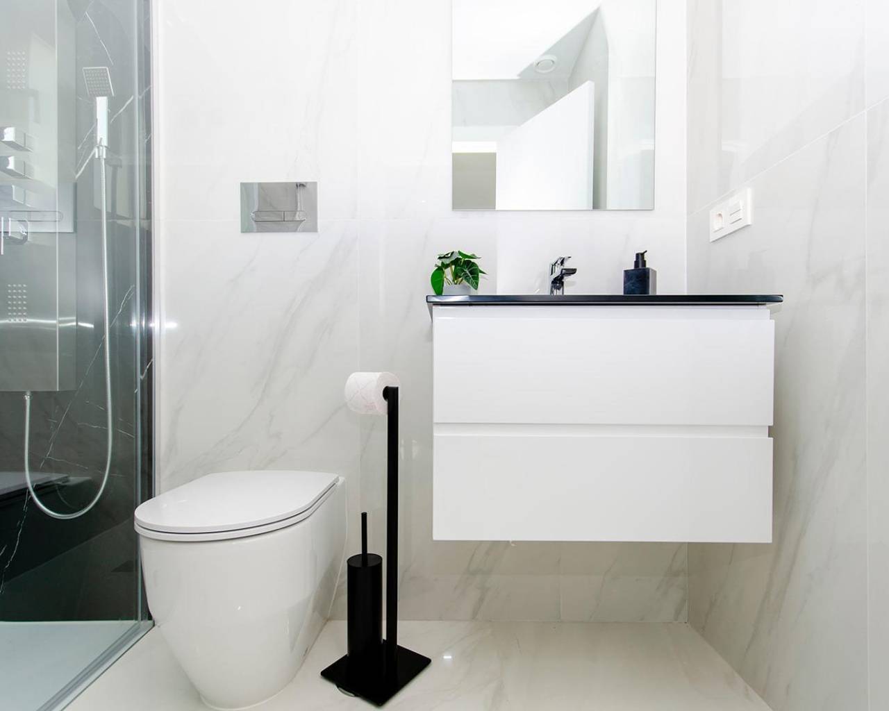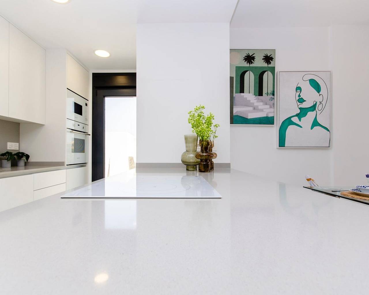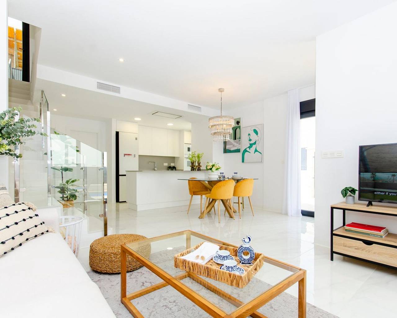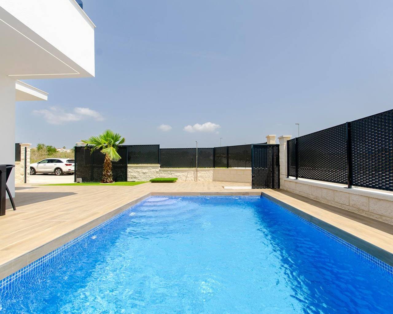 NYBYGGDE VILLAER I VISTABELLA GOLFRESORT Nybygg luksusvillaer bygget over 2 etasjer beliggende i Vistabela golfresort, mellom San Miguel og Los Montesinos i Orihuela Costa. Villaer med 3 soverom, 3 bad, åpen stue med kjøkken, privat hage med basseng og parkeringsplass. Et alternativ du kan ha et privat solarium mot en ekstra kostnad. På Vistabella Golf er det plass til alle. Banen er laget slik at hver spiller kan nyte det fra start til slutt. Dens bølgende gater, strategiske bunkere eller innsjøer er noen av funksjonene som gjør den til en av de mest attraktive designene i området, hvor hvert slag er en utfordring og en nytelse for sansene. De 18 hullene i Vistabella Golf, par 72 og mer enn 6000 meter i lengde er designet etter retningslinjene til de moderne feltene med 4 tees med stor amplitude i hvert hull, brede fairways og hevet bunkers. Vistabella Golf klubbhus og restaurant og lokale barer og butikker ligger innen 5 minutters gange. Den travle byen San Miguel de Salinas og Los Montesinos ligger 5 minutters kjøring unna, og de vakre strendene med blått flagg ved Guardamar ligger bare 15 minutters kjøring unna. Alicante flyplass ligger 35 minutter unna, og den nye Corvera Murcia flyplass ligger 45 minutter unna.