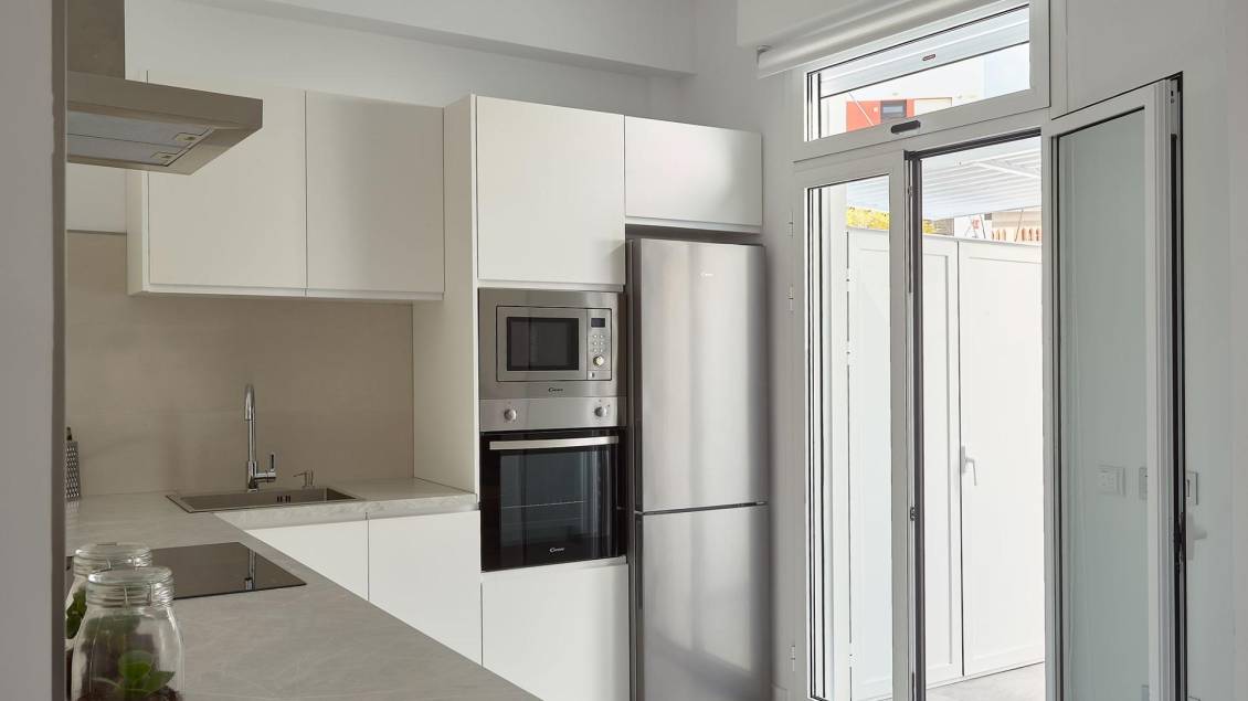 NYBYGG BOLIGKOMPLEKS I VERA Nybygget bolig med leiligheter i Vera bare 400 meter fra den enorme Vera-stranden kalt "El Playazo". Typologiene er i første etasje med to private hager, en i hver orientering, som lar deg nyte sol eller skygge når du vil, avhengig av tid på døgnet eller årstiden. De første etasjene har terrasser og toppleilighetene har store solarium. Alle leilighetene har ekstra takhøyde (2,95 m) som gir en god følelse av romslighet. Kjøkkenet er fullt møblert og utstyrt integrert med stue/spisestue med barområde. Dører og innbyggede garderober er lakkert i hvitt og gulvet er i laminert tre. Det varme-kalde klimaanlegget og det varme vannet genereres av en toppmoderne DAIKIN Aerothermal-enhet, en teknologi som sparer opptil 70 % av strømforbruket sammenlignet med tradisjonelle systemer. Alle badene kommer med dusj i stedet for badekar, med innfelte speil og også med benkeplate i stein og glassskillevegg på hovedbadet. Persiennene i stuen og hovedsoverommet er elektriske, hermetisk lukkede og med justerbare lameller. Hagene og solariet leveres med ferdige gulv som kombinerer kunstgress og en vakker belegningsimitasjon i tre. Hvert hus inkluderer en privat utendørs parkeringsplass. Hver blokk i kampanjen har en uavhengig heis. Både bygningene og leilighetene har en rekke bioklimatiske arkitekturkarakteristikker (orientering, isolasjon, vinduer og skodder, pergolaer) som tillater optimal naturlig regulering av ventilasjon, temperatur og lys gjennom de ulike årstidene. Fellesarealene er bygd opp av fotgjengerplasser og grøntarealer, med et stort svømmebasseng for voksne og et annet for barn på sentralplassen. Hele urbanisasjonen er fri for arkitektoniske barrierer for funksjonshemmede. Her er ro og avslapning garantert. Vera er et av de beste naturiststedene i Europa, anerkjent for kvaliteten og renheten til vannet. Det tilbyr seks kilometer med strender (Las Marinas-Bolaga, Puerto Rey, El Playazo, Quitapellejos). Vera grenser til kjente turistmål som Mojacar og Almanzora-hulene. Boligkompleks som ligger ca 1,5 times kjøretur fra Murcia - Corvera flyplass og ca 2 timer unna Alicante flyplass.