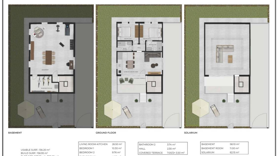 Nybyggede villaer i Camposol Golf (Mazarron-Murcia) med privat solterrasse og kjeller