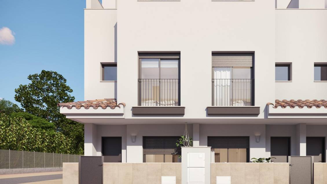 Moderne rekkehus nær golfbaner i Santa Rosalia-Murcia Nybygg i fredelige landsbyomgivelser Oppdag dette attraktive nye boligprosjektet med moderne rekkehus i den sjarmerende landsbyen Santa Rosalia i regionen Murcia. Omgitt av noen av de mest prestisjefylte golfbanene i området og bare en kort kjøretur fra strendene ved Mar Menor, tilbyr denne beliggenheten den perfekte kombinasjonen av ro, bekvemmelighet og friluftsliv. Santa Rosalia er en tradisjonell spansk landsby med en innbydende atmosfære, hvor beboerne kan nyte lokale butikker, et supermarked, barer og restauranter, inkludert den populære La Almazara. Den strategiske beliggenheten mellom Roda Golf, Mar Menor Golf og Los Alcazares gjør stedet svært attraktivt både for fastboende og som feriebolig. Stilfulle rekkehus med solterrasse og utendørs oppholdsområder Prosjektet består av 18 moderne rekkehus med 2 eller 3 soverom og 2 bad, designet med en moderne åpen planløsning. Hvert hjem har en lys stue og spisestue som er koblet til et fullt utstyrt kjøkken med hvitevarer, noe som skaper et funksjonelt og komfortabelt oppholdsrom. Alle boligene har et privat solarium på taket med et sommerkjøkken, ideelt for å nyte middelhavsklimaet, underholde gjester eller slappe av utendørs hele året. I tillegg har hver bolig en privat parkeringsplass og et oppbevaringsrom i en felles garasje. Kvalitetsfinish og moderne funksjoner Disse boligene er bygget med materialer av høy kvalitet og designet for å tilby komfort og energieffektivitet. Funksjonene inkluderer et aerotermisk system for varmt vann, forhåndsinstallasjon for kanalisert klimaanlegg og fullt utstyrte bad med møbler, speil og dusjvegger. Anlegget har også et felles svømmebasseng, som gir et perfekt sted å slappe av og nyte solfylte dager i fredelige omgivelser. Førsteklasses beliggenhet nær golf og sjø Santa Rosalia har en ideell beliggenhet bare 4,5 km fra strendene i Los Alcazares, kjent for sitt rolige vann og den lange promenaden langs Mar Menor. Området rundt er et paradis for golfelskere, med flere toppbaner bare noen minutter unna. Den nærliggende byen Los Alcazares tilbyr et bredt utvalg av tjenester, restauranter, butikker og fritidsaktiviteter, noe som gjør hverdagen enkel og hyggelig. Avstander til viktige severdigheter Strendene i Los Alcazares 4,5 km Roda Golf 3 km Mar Menor Golf 4 km Cartagena 25 km Murcia internasjonale lufthavn 30 km Ditt ideelle hjem på Costa Calida Dette prosjektet gir en utmerket mulighet til å eie et moderne rekkehus i et godt tilknyttet og fredelig område nær golfbaner og havet. Kontakt oss i dag for å få mer informasjon eller avtale en visning, og sikre deg ditt nye hjem i Santa Rosalia.