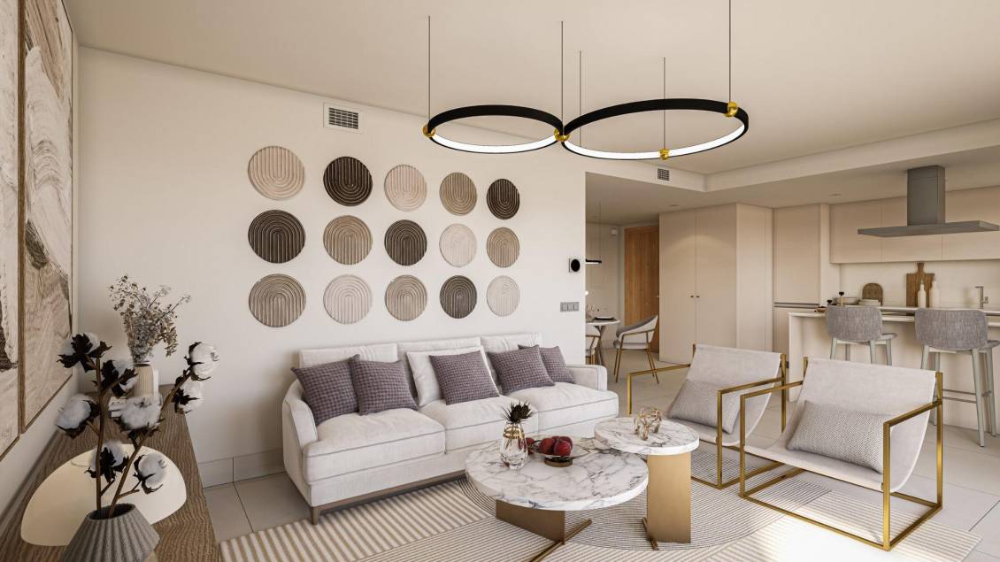 Nybyggede leiligheter med havutsikt i Bahía de las Rocas, Manilva, Costa del Sol Førsteklasses beliggenhet i Bahía de las Rocas-Manilva Oppdag dette eksklusive nye boligprosjektet i Bahía de las Rocas, et av de mest privilegerte områdene i Manilva på Costa del Sol. Med sin ideelle beliggenhet mellom Punta Paloma og den prestisjetunge marinaen i Sotogrande tilbyr dette området en perfekt blanding av ro, naturskjønnhet og kystliv. Området er kjent for sine uberørte strender, tradisjonelle strandbarer og panoramautsikt over Middelhavet, noe som gjør det til et ideelt sted for både fastbolig og fritidsbolig. Manilva har en avslappet atmosfære, samtidig som det ligger nær livlige reisemål som Estepona og Sotogrande, som tilbyr et bredt utvalg av fritids-, spisesteder og sportsaktiviteter. Moderne leiligheter designet for middelhavsliv Dette prosjektet består av 90 stilfulle leiligheter med 2 og 3 soverom og 2 bad, inkludert ett eget bad. Boligene er designet med fokus på komfort, funksjonalitet og naturlig lys, med sørøst- og sørvestvendte fasader som maksimerer solinnstrålingen gjennom dagen. Alle boligene har romslige terrasser, perfekte for å nyte friluftslivet, og de fleste enhetene har havutsikt. Avhengig av planløsningen kan kjøpere velge mellom leiligheter i første etasje med terrasser eller private hager, enheter i mellometasjene med store terrasser eller penthouse-leiligheter med private solterrasser som tilbyr fantastisk utsikt over kystlinjen. Høy kvalitet på finish og energieffektivitet Hver leilighet er bygget med førsteklasses materialer og moderne spesifikasjoner for å sikre komfort og bærekraft. Funksjonene inkluderer fullt utstyrte kjøkken med hvitevarer, innebygde garderober, fullt utstyrte bad med møbler, speil og dusjvegger, samt installert klimaanlegg. Ytterligere høydepunkter inkluderer elektriske persienner, forsterkede inngangsdører, aerotermiske systemer for varmt vann og energiklassifisering A-sertifisering. Prosjektet inkluderer også solcellepaneler for å dekke felles energiforbruk og forhåndsinstallasjon for lading av elbiler i hver bolig, noe som gjenspeiler en forpliktelse til effektiv og bærekraftig livsstil. Eksklusive fellesarealer for avslapning og velvære Beboerne kan nyte et privat, inngjerdet boligområde med anlagte hager og utmerkede fellesfasiliteter. Disse inkluderer svømmebassenger, et fullt utstyrt treningsrom og en sosial salong designet for avslapning og sosialt samvær. Det fredelige miljøet og de nøye utformede områdene skaper perfekte rammer for å nyte den middelhavsinspirerte livsstilen. Hver bolig har også en underjordisk parkeringsplass og et bod, noe som sikrer bekvemmelighet og praktisk funksjonalitet. Utmerket tilknytning og nærliggende severdigheter Sotogrande marina 5 km Estepona 15 km La Duquesa havn 3 km Valderrama Golf 12 km Alcaidesa Golf 10 km Gibraltar lufthavn 30 km Málaga lufthavn 95 km Ditt ideelle hjem på Costa del Sol Enten du er på jakt etter en fast bolig, et feriested eller en smart investering, tilbyr disse nybygde leilighetene i Manilva en uovertruffen kombinasjon av beliggenhet, kvalitet og livsstil. Kontakt oss i dag for mer informasjon eller for å avtale en visning og sikre deg ditt nye hjem på Costa del Sol.