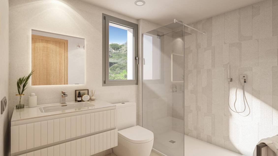 Nybyggede leiligheter med havutsikt i Bahía de las Rocas, Manilva, Costa del Sol Førsteklasses beliggenhet i Bahía de las Rocas-Manilva Oppdag dette eksklusive nye boligprosjektet i Bahía de las Rocas, et av de mest privilegerte områdene i Manilva på Costa del Sol. Med sin ideelle beliggenhet mellom Punta Paloma og den prestisjetunge marinaen i Sotogrande tilbyr dette området en perfekt blanding av ro, naturskjønnhet og kystliv. Området er kjent for sine uberørte strender, tradisjonelle strandbarer og panoramautsikt over Middelhavet, noe som gjør det til et ideelt sted for både fastbolig og fritidsbolig. Manilva har en avslappet atmosfære, samtidig som det ligger nær livlige reisemål som Estepona og Sotogrande, som tilbyr et bredt utvalg av fritids-, spisesteder og sportsaktiviteter. Moderne leiligheter designet for middelhavsliv Dette prosjektet består av 90 stilfulle leiligheter med 2 og 3 soverom og 2 bad, inkludert ett eget bad. Boligene er designet med fokus på komfort, funksjonalitet og naturlig lys, med sørøst- og sørvestvendte fasader som maksimerer solinnstrålingen gjennom dagen. Alle boligene har romslige terrasser, perfekte for å nyte friluftslivet, og de fleste enhetene har havutsikt. Avhengig av planløsningen kan kjøpere velge mellom leiligheter i første etasje med terrasser eller private hager, enheter i mellometasjene med store terrasser eller penthouse-leiligheter med private solterrasser som tilbyr fantastisk utsikt over kystlinjen. Høy kvalitet på finish og energieffektivitet Hver leilighet er bygget med førsteklasses materialer og moderne spesifikasjoner for å sikre komfort og bærekraft. Funksjonene inkluderer fullt utstyrte kjøkken med hvitevarer, innebygde garderober, fullt utstyrte bad med møbler, speil og dusjvegger, samt installert klimaanlegg. Ytterligere høydepunkter inkluderer elektriske persienner, forsterkede inngangsdører, aerotermiske systemer for varmt vann og energiklassifisering A-sertifisering. Prosjektet inkluderer også solcellepaneler for å dekke felles energiforbruk og forhåndsinstallasjon for lading av elbiler i hver bolig, noe som gjenspeiler en forpliktelse til effektiv og bærekraftig livsstil. Eksklusive fellesarealer for avslapning og velvære Beboerne kan nyte et privat, inngjerdet boligområde med anlagte hager og utmerkede fellesfasiliteter. Disse inkluderer svømmebassenger, et fullt utstyrt treningsrom og en sosial salong designet for avslapning og sosialt samvær. Det fredelige miljøet og de nøye utformede områdene skaper perfekte rammer for å nyte den middelhavsinspirerte livsstilen. Hver bolig har også en underjordisk parkeringsplass og et bod, noe som sikrer bekvemmelighet og praktisk funksjonalitet. Utmerket tilknytning og nærliggende severdigheter Sotogrande marina 5 km Estepona 15 km La Duquesa havn 3 km Valderrama Golf 12 km Alcaidesa Golf 10 km Gibraltar lufthavn 30 km Málaga lufthavn 95 km Ditt ideelle hjem på Costa del Sol Enten du er på jakt etter en fast bolig, et feriested eller en smart investering, tilbyr disse nybygde leilighetene i Manilva en uovertruffen kombinasjon av beliggenhet, kvalitet og livsstil. Kontakt oss i dag for mer informasjon eller for å avtale en visning og sikre deg ditt nye hjem på Costa del Sol.