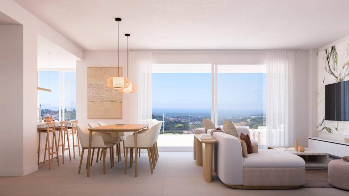 Nowy kompleks mieszkaniowy z widokiem na pole golfowe i morze w pobliżu Estepony