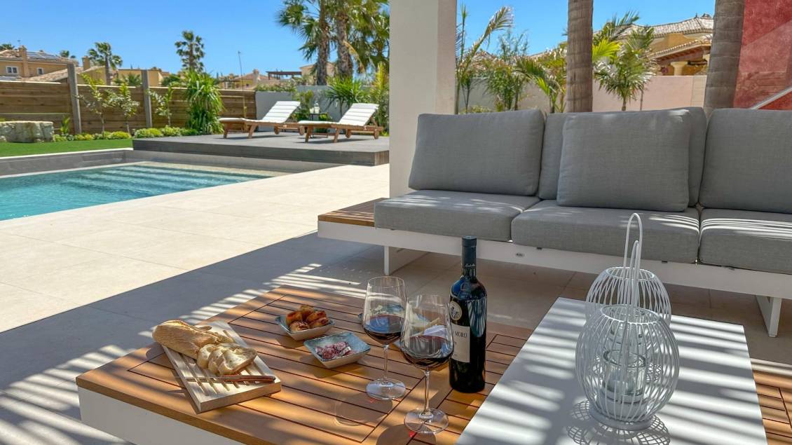 OSZAŁAMIAJĄCE NOWO WYBUDOWANE WILLE W OŚRODKU DESERT SPRINGS Ta piękna, nowoczesna i stylowa inwestycja zajmuje zazdrosną pozycję w ośrodku Desert Springs, oferując wybór willi z trzema sypialniami, z których roztacza się wspaniały widok na mistrzowskie pole golfowe Indiana i pasma górskie. Ogrodzony dziedziniec, głęboko zacienione werandy, prywatny ogród krajobrazowy wychodzący bezpośrednio na pole golfowe, indywidualny basen, wbudowany grill i rozległe tarasy na dachu to tylko niektóre z zewnętrznych cech nieruchomości. Współczesne wzornictwo i naturalne światło, dające ogólne poczucie przestrzeni, to wyjątkowe cechy wyrafinowanych wnętrz, które oferują stylowe domy o nowoczesnym wyglądzie. Funkcje obejmują przestronną wewnętrzną recepcję, która otwiera się z "poziomą podłogą" na zadaszone werandy i ogród, oferując ponad 93 m2 połączonej wewnętrznej / zewnętrznej przestrzeni mieszkalnej i jadalnej, zaprojektowanej tak, aby była używana jako jedna w szczególnie uprzywilejowanym klimacie regionu. Główna sypialnia z łazienką ma bezpośredni dostęp do rozległej werandy i basenu. Istnieją dwie kolejne sypialnie, obie z łazienkami i szatnią. Na parterze znajduje się pokój gier, sala kinowa, pomieszczenie gospodarcze, biuro i czwarta łazienka. Podwójne szyby, wysokiej jakości wyposażona kuchnia, zintegrowany sprzęt AGD i szafy w sypialni oraz wyposażenie bezpieczeństwa są standardem w całym budynku. Mechaniczny system wentylacji na dolnym i parterze oraz panele fotowoltaiczne podłączone do zasobnika ciepłej wody z indywidualnie sterowanymi klimatyzatorami ciepło/zimno w salonie i sypialniach, w pełni zaspokajają wszystkie wymagania dotyczące kontroli temperatury.