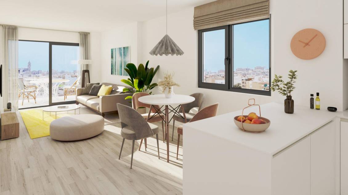 NEW BUILD APARTMENTS IN MALAGA New Build residential complex consists of 35 apartments distributed in Ground Floor+7 in two buildings, with various types of 1 and 2 bedrooms in a unique building in the city centre. With a modern and contemporary design, the building has a south, east and west orientation, where the main rooms of the homes are also open, thus achieving the highest number of hours of sunshine and maximum energy efficiency. The residential complex includes excellent communal areas equipped with swimming pool, solarium and lounge area. All properties have been designed with modern, open-plan layouts that make the best use of space and sunlight. Their unbeatable layouts achieve an optimum balance in the dimensions of the rooms, reducing the residual space to a minimum. This is why the homes have large corner windows, bedrooms with en-suite bathrooms, as well as spectacular living rooms connected to spacious terraces. Modern properties stand out for their unbeatable orientation, which gives the homes great luminosity and comfort under the concept of "Open spaces" with a living-dining room-terrace connection. There are 36 parking spaces, with 1 per home and 35 storage rooms. To make your new home your own, you can personalise different aspects. Residential complex located on the main street as the backbone of the capital of Malaga, in a consolidated environment in regeneration, with all the necessary services and infrastructures to guarantee the best accessibility and make everything easier for you. It is located less than 20 minutes' walk from all kinds of services and facilities: sports (Carranque Sports City, now called Javier Imbroda), leisure (Larios Shopping Centre, Vialia Corte Inglés Shopping Centre, Historic Centre, Muelle Uno), health (Civil Hospital, Maternity Hospital) and education (El Ejido Campus). A quiet and residential neighbourhood with all the facilities for your day to day life less than 5 minutes away; supermarkets, chemist, bank, educational centres (El Globo Azul Nursery School, La Purísima School, Gamarra School, Ramón Simonet School, Lope de Vega School, Pablo Ruiz Picasso School, San José School, etc), as well as a wide range of leisure and shopping options.