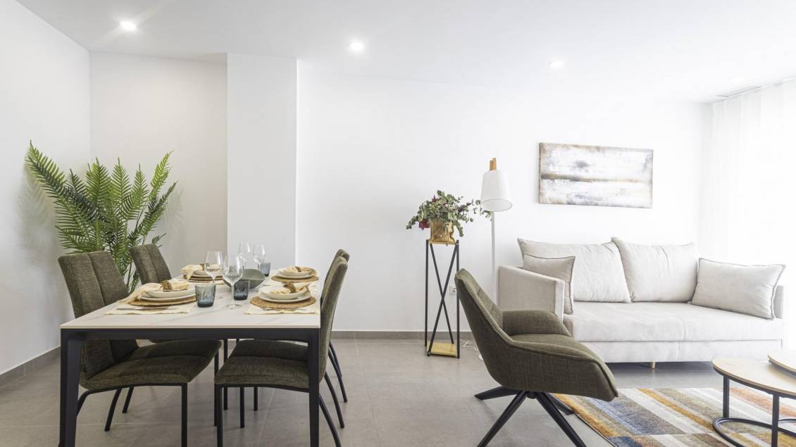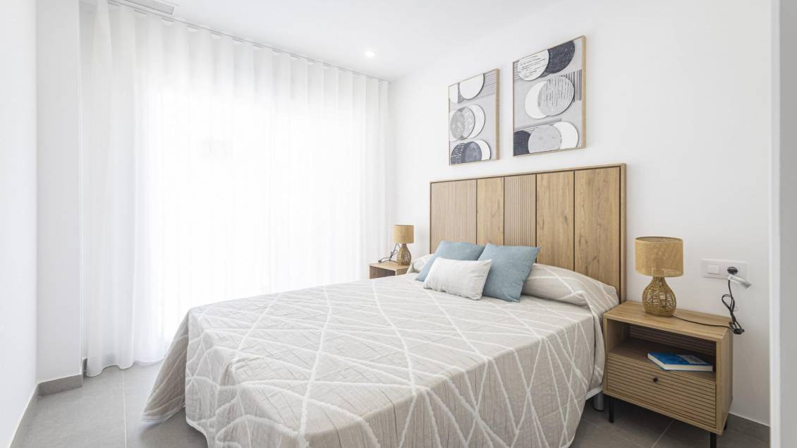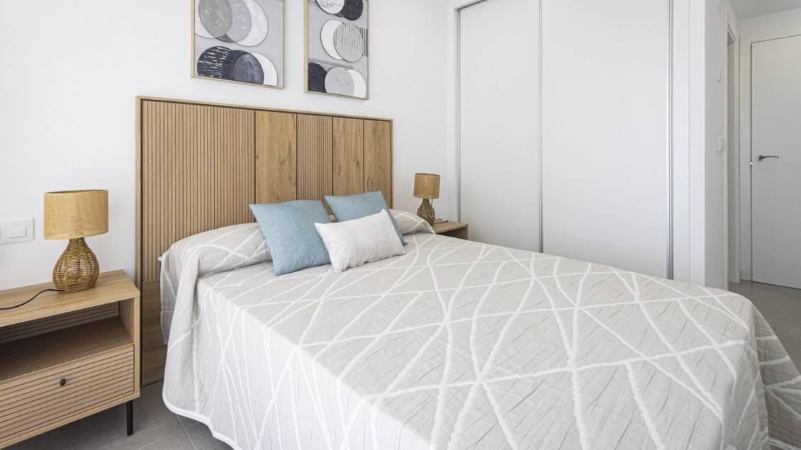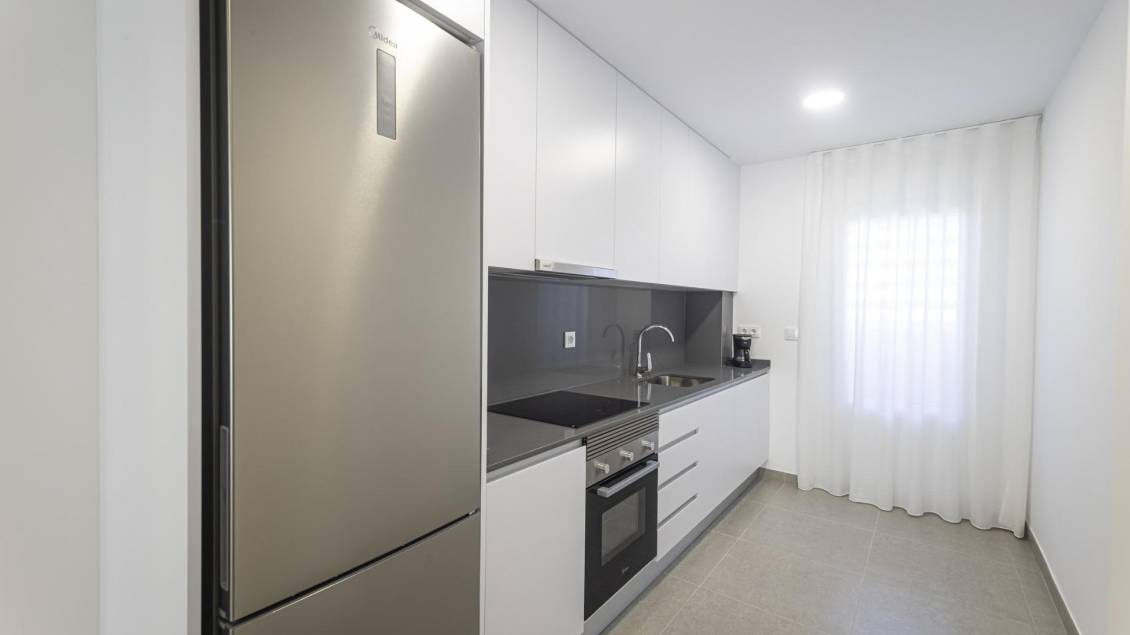 BEAUTIFUL SEA VIEW APARTMENTS IN LA MANGA This urbanization is located in the largest expansion area of ​​La Manga. In this new urbanization the homes have been designed to take advantage of every corner of the house, as well as the care in choosing the materials and their design. Apartments with armored entrance door and doors lacquered in white with stainless steel fittings. White, monobloc blinds and double glazing with air chamber. In the master bedroom built-in wardrobe with sliding doors, with a separating shelf in the mezzanine, a bar and a chest of three drawers. Kitchen with high and low furniture, in white, gola-type handle, single sink with drainer, ceramic hob, electric oven and extractor hood. Pre-installation of air conditioning (cold and heat) through conduits with provision of zoning of rooms. La Manga del Mar Menor is a natural strip of land surrounded by two seas, the Mar Menor and the Mediterranean Sea. To this rarity you can add the multiple leisure and free time options, restaurants, supermarkets, medical centers, pharmacies, nautical sports centers, golf courses. La Manga is located on the north coast of the Costa Calida and is a popular holiday destination for tourists. The narrow land strip separating the warm lagoon and the colder sea has a unique microclimate. It’s one of the most exotic areas in Spain. Corvera airport is about 1 hour drive away and Alicante airport about 2 hours away.