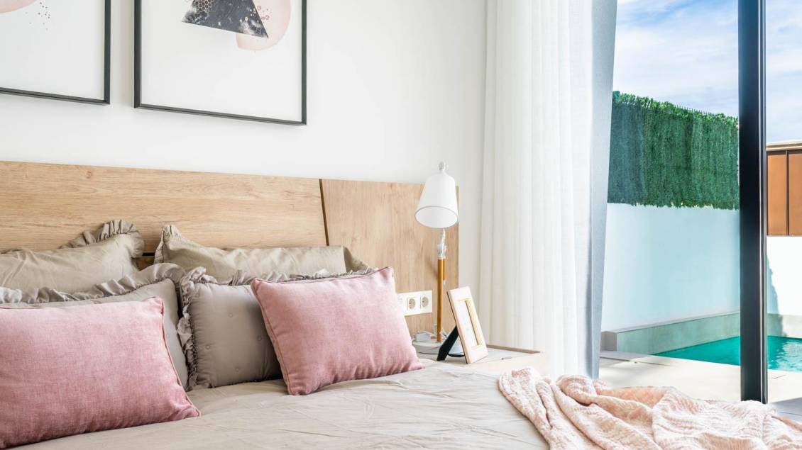 New Build Independent Villas with Private Pool and Solarium in Roldán, Torre-Pacheco Modern Single-Level Villas with Exclusive Design These brand-new 3-bedroom, 2-bathroom villas in Roldán, Torre-Pacheco, offer a contemporary and eco-friendly design with comfort and lifestyle in mind. Built on a single level, each home features a spacious open-plan living and dining area with a fully equipped modern kitchen, seamlessly connected to large terraces and a rooftop solarium. The villas are thoughtfully designed to blend functionality and aesthetics, with angled stone-clad facades, sleek finishes, and plenty of outdoor space to enjoy the Mediterranean sun all year round. Private Outdoor Space and Premium Features Every villa comes complete with: Private swimming pool and outdoor shower Roof-top solarium with ample space for sunbathing or creating a chill-out zone Terrace and garden areas on the ground level Private driveway for off-road parking LED lighting package for both interior and exterior Pre-installed air conditioning system The master bedroom includes an en-suite bathroom, while two additional bedrooms share a family bathroom, all designed with a contemporary touch and high-quality finishes. Ideal Location Close to Beaches and Golf Roldán is a charming Spanish town in the municipality of Torre-Pacheco, known for its traditional ambiance and complete range of daily services, including supermarkets, restaurants, healthcare facilities, and schools. The location offers proximity to several key attractions: Corvera Airport (RMU) – 15 km Beaches of the Mar Menor and Mediterranean Sea – 20 km Golf courses (La Torre Golf and Las Terrazas de La Torre) – within 4 km Cartagena city centre – 32 km Zenia Boulevard Shopping Centre – 35 km Marina of Los Alcázares – 22 km Whether you're seeking a holiday home, permanent residence, or a strong rental investment, this location offers easy access to coastal attractions, sports facilities, and urban convenience. Your New Life in the Sun Awaits Don’t miss the opportunity to own one of these stylish new villas in Roldán. Contact us today for more details, to arrange a visit, or to secure your new home on the Costa Cálida before they're all reserved.