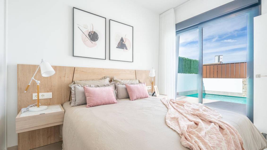 Newly built detached villas with private pool in Roldán, Torre-Pacheco Modern two-storey villas with exclusive design These newly built 3-bedroom, 3-bathroom villas in Roldán, Torre-Pacheco, offer a contemporary and eco-friendly design, designed for comfort and the Mediterranean lifestyle. Built on two floors, each property has a spacious open-plan living/dining room with a modern, fully equipped kitchen, which opens seamlessly onto large terraces. The villas are carefully designed to combine functionality and aesthetics, elegant finishes and plenty of outdoor space to enjoy the Mediterranean sun all year round. Private outdoor space and top-quality features Each villa has: Private pool with beach access and outdoor shower First floor terrace and landscaped areas on the ground floor Private entrance to off-street parking LED lighting package for interior and exterior Pre-installation for air conditioning The 3 bedrooms have en-suite bathrooms, all designed with a contemporary touch and high-quality finishes. Ideal location close to beaches and golf Roldán is a charming Spanish village in the municipality of Torre-Pacheco, known for its traditional atmosphere and comprehensive range of daily amenities, including supermarkets, restaurants, health centres and schools. The location offers proximity to several places of interest: Corvera Airport (RMU) - 15 km Mar Menor and Mediterranean beaches - 20 km Golf courses (La Torre Golf and Las Terrazas de La Torre): less than 4 km Cartagena town centre: 32 km Zenia Boulevard shopping centre: 35 km Los Alcázares marina: 22 km Whether you are looking for a holiday home, a permanent residence or a sound investment to let, this location offers easy access to the attractions of the coast, sports facilities and city amenities. Your new life in the sun awaits Don't miss out on the opportunity to purchase one of these elegant new villas in Roldán. Contact us today for more information, to arrange a viewing or to secure your new home on the Costa Cálida before they sell out.