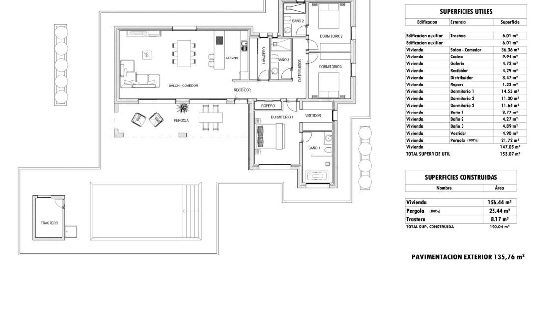 190 m2 · 13.172 m2 land · 3 Bedrooms · 3 Bathrooms · Pool