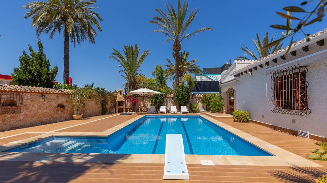 We present this charming villa located in one of the most privileged areas of the Costa Blanca: Punta Prima, just a few steps from the sea. The property has a built area of 168 m², set on a spacious 540 m² plot, offering privacy, comfort, and ample outdoor space to enjoy. The villa features 4 spacious bedrooms, 2 full bathrooms, a bright living-dining room with direct access to the exterior, and a modern fully equipped open-plan kitchen. Outside, the property boasts a private pool, barbecue area, sunny terraces, and a Mediterranean garden – ideal for enjoying the climate all year round. Punta Prima is a well-established coastal area, known for its direct access to the sea, fine sandy beaches, natural coves, and peaceful environment. All essential services are nearby: restaurants, supermarkets, pharmacies, shopping centres such as La Zenia Boulevard, and excellent road connections. Just 10 minutes by car from the centre of Torrevieja, and surrounded by golf courses, sports facilities, and green areas.