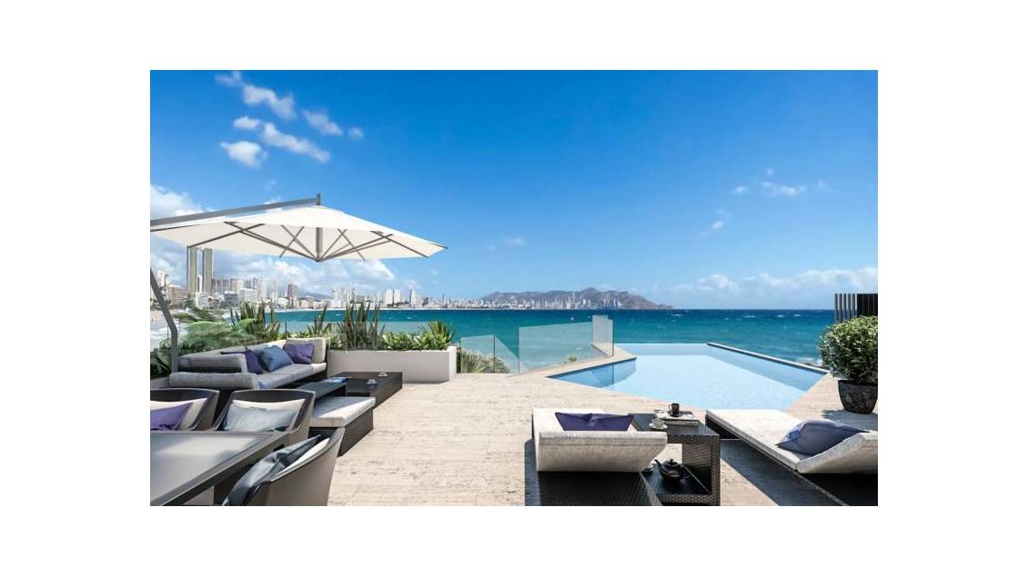 FIRST LINE OF BEACH IN BENIDORM AND WITH PRIVATE POOL !!! Located on the 1st line of Playa Poniente in Benidorm. With stunning views of the entire bay. Penthouse, equipped with 3 bedrooms, 2 bathrooms, living room, kitchen, large terrace and private pool Equipped with air conditioning, underfloor heating, elevator, garage, storage room, electrical appliances. It has all the services around: supermarkets, restaurants, pharmacies, banks. Distance to the airport 40 km and to the Golf 10 km. The city of Alicante is 30km away.