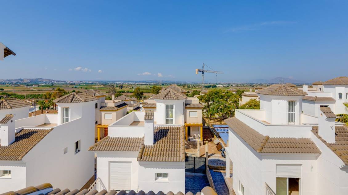 NEW BUILD RESIDENTIAL IN SAN FULGENCIO Residential complex of independent and semi-detached villas in San Fulgencio. The houses consist of 3 bedrooms, 3 bathrooms, living room and separate kitchen, 2 terraces on the ground floor, one terrace on the 2nd floor and a solarium on the roof. Each property has private garden and parking space. There is a large communal swimming pool. San Fulgencio is a comfortable and convenient area, known for its excellent infrastructure. In the immediate vicinity of cafes, restaurants, bars, pharmacies, 3 large supermarkets: Lidl, Aldi, Mercadona. Residential complex is located 10 minutes by car from the beach and also 10 minutes from the most famous in this area leisure and family center ¨La Marina Resort¨ with a water park, camping, gym, spa, restaurants, shops and cafes. Residential complex has a unique location – 30 minutes by car from the airport, 40 minutes from the city of Alicante and 20 minutes from the city of Torrevieja.