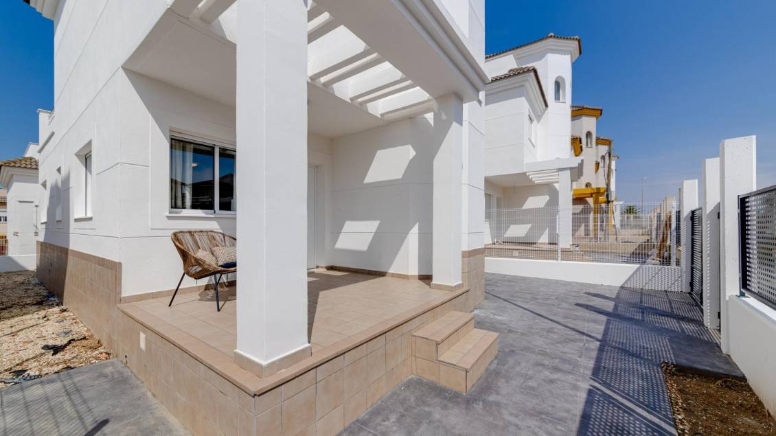 NEW BUILD RESIDENTIAL IN SAN FULGENCIO Residential complex of independent and semi-detached villas in San Fulgencio. The houses consist of 2-3 bedrooms, 3 bathrooms, living room and separate kitchen, 2 terraces on the ground floor, one terrace on the 2nd floor and a solarium on the roof. Each property has private garden and parking space. There is a large communal swimming pool. San Fulgencio is a comfortable and convenient area, known for its excellent infrastructure. In the immediate vicinity of cafes, restaurants, bars, pharmacies, 3 large supermarkets: Lidl, Aldi, Mercadona. Residential complex is located 10 minutes by car from the beach and also 10 minutes from the most famous in this area leisure and family center ¨La Marina Resort¨ with a water park, camping, gym, spa, restaurants, shops and cafes. Residential complex has a unique location – 30 minutes by car from the airport, 40 minutes from the city of Alicante and 20 minutes from the city of Torrevieja.