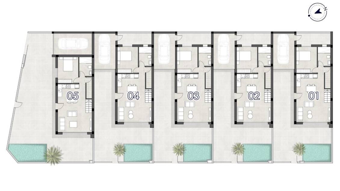 New Build Semi-Detached Villas with Private Pool in San Pedro del Pinatar Modern Homes in a Prime Location This exclusive development of 5 semi-detached villas is located in San Pedro del Pinatar, a vibrant coastal town in the Costa Cálida. Positioned near the municipal sports center, within walking distance to the town center, and just 3.5 km from the beaches of the Mar Menor and Mediterranean, these homes offer the perfect blend of comfort, convenience, and Mediterranean lifestyle. Contemporary Design and Functional Layout Each villa is distributed across two floors and designed with modern architecture, maximizing space and natural light. With 3 bedrooms and 2 bathrooms, these properties are ideal for families, holiday homes, or investment. Ground Floor: Open-plan kitchen connected to the bright living and dining area, one bedroom, one bathroom, a rear patio and direct access to the private garden with pool. First Floor: Two additional bedrooms, one bathroom, and a spacious terrace with access to the private rooftop solarium, perfect for sunbathing or entertaining. Quality Finishes and Comfort The villas are delivered with high-quality specifications and thoughtful details to ensure modern living: Fully furnished and equipped kitchen with appliances Private swimming pool and garden Rooftop solarium for year-round outdoor living Summer kitchen included Interior and exterior lighting package Closed private garage San Pedro del Pinatar - Lifestyle and Surroundings San Pedro del Pinatar is renowned for its year-round sunshine, sandy beaches, and natural landscapes such as the famous Salinas y Arenales Natural Park. The town offers all essential services, including shops, supermarkets, restaurants, health centers, and sports facilities, making it an excellent place for both permanent living and holidays. Distances to key points of interest: Beaches of the Mar Menor - 3.5 km Dos Mares Shopping Center - 5 km Lo Pagán Marina - 4 km Roda Golf - 8 km Murcia Airport (Corvera) - 35 km Alicante Airport – 75 km Secure Your New Home by the Sea These new build semi-detached villas in San Pedro del Pinatar combine modern design, high-quality finishes, and a privileged location close to the sea and all amenities. Contact us today for more information or to schedule a viewing and take the first step toward your dream Mediterranean home.