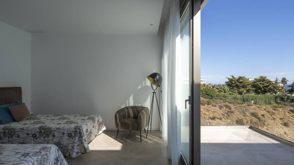 Exclusive New Villas for Sale in Las Farolas, Mijas Costa Prime Location by the Sea on the Costa del Sol Discover this new development of 7 luxury villas located in the prestigious and well-established Las Farolas urbanization, between Fuengirola and La Cala de Mijas. Just 100 meters from the beach, these exceptional homes enjoy partial sea and mountain views and easy access directly from the N-340 (A7) coastal road. The area is known for its tranquility, proximity to the Mediterranean, and excellent connections to Málaga, Marbella, and the airport. Elegant Design and Superior Construction Quality Built by a developer with extensive experience on the Costa del Sol, this project reflects the highest standards of quality, safety, and modern design. Each villa combines Mediterranean charm with contemporary architecture to offer a bright, functional, and elegant living space. Spacious Layout Over Three Levels Each villa is distributed over three floors, offering generous interior and exterior spaces: Basement: garage for two cars, technical rooms, storage, an additional bedroom with bathroom, and multipurpose areas ideal for a gym, home cinema, or games room. Main floor: large living and dining area with kitchen, laundry room, guest toilet, and one bedroom with ensuite bathroom. The living space opens onto an expansive terrace with a private pool and garden. Upper floor: additional bedrooms, including the master suite with freestanding bathtub and access to private terraces, some with sea views. Luxury Finishes and Modern Comfort Every villa is equipped with premium materials and the latest technology, including: Fully fitted Bosch kitchen appliances Motorized shutters in all bedrooms Underfloor heating via aerothermal system and air conditioning by ducts. Smart home automation to control blinds, lighting, and climate Landscaped gardens with automatic irrigation system Distances to main points of interest: Beach: 100 m La Cala de Mijas: 3 km Fuengirola center: 6 km Marbella: 22 km Málaga International Airport: 30 km Nearest golf course (Chaparral Golf): 2 km Málaga city center: 40 km A Lifestyle of Comfort and Prestige These villas in Las Farolas offer an unmatched combination of privacy, luxury, and proximity to the sea, making them ideal as a permanent residence, vacation home, or investment on the Costa del Sol. Contact us today to arrange a viewing and discover your dream villa in Mijas Costa.
