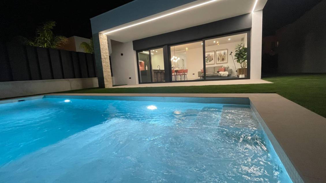 NEW BUILD VILLAS IN MOLINA DE SEGURA New Build one level villa with 3 bedrooms, 2 bathrooms, open plan kitchen with spacious living room, fitted wardrobes, terrace, private garden with the pool and parking space. Villas located in private urbanisation with 24h/7 security. Surroundings with a lot of nature and mountains. Shopping centres at 11 km (IKEA, shops, supermarkets, restaurants...) Supermarket at 350 m. Golf course at 7 km. Water park 12 km. 2 international schools less than 20 min drive away. Murcia city centre 14 km. Beaches of Murcia 45 min and Orihuela Costa 50 min away. Murcia airport 30 min and Alicante airport 45 min away. Perfect location to enjoy Spanish life all year round.
