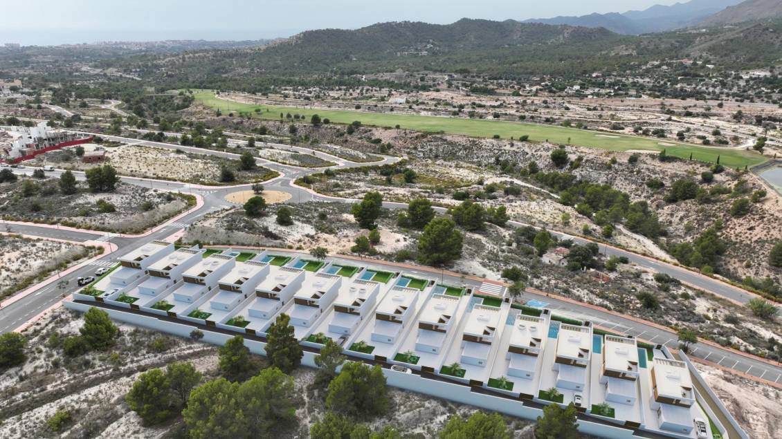 Modern Villas for Sale in the Heart of Costa Blanca, Alicante Discover a stunning new development of 14 modern villas located in the province of Alicante on the beautiful Costa Blanca. Nestled between Benidorm, Finestrat, and the iconic Puig Campana mountain, these villas offer breathtaking views of the sea and are situated near the newly developed Puig Campana Golf course. With a short 10-minute drive to some of Spain's most prestigious beaches, these properties provide an unmatched lifestyle in a tranquil yet accessible setting. Prime Location Close to Beaches and Amenities These villas are perfectly positioned just a few kilometers from the bustling city of Benidorm, known for its vibrant nightlife, golden beaches, and family attractions like Terra Mítica theme park, just 5 km away. Finestrat, only 4 km from the property, offers charming streets and panoramic views, making it an ideal escape for a peaceful afternoon. Alicante’s international airport is conveniently located just 40 km away, allowing for quick and easy travel, with an approximate drive time of 25 minutes. World-Class Golfing Experience Golf enthusiasts will love the proximity to two prestigious golf courses. The newly opened Puig Campana Golf, a 9-hole course, is just 1 km away, offering stunning views and a challenging design. Villaitana Golf, situated 6 km away, features two exclusive Nicklaus Design courses: Levante Golf Course, an 18-hole American-style course with wide fairways and challenging obstacles. Poniente Golf Course, a technical 18-hole course perfect for golfers seeking a more compact layout. Modern Design and Luxury Features Each villa is designed with a modern aesthetic, combining sleek elegance with functionality. Featuring private pools, parking spaces, terraces, and solariums, these villas offer everything you need for both relaxation and entertainment. Select units also include a basement, adding extra space for personalized living areas. Enjoy life on the Costa Blanca, with easy access to Benidorm, Finestrat, and Alicante. These villas provide the perfect blend of luxury, modern architecture, and prime location, making them ideal for both holiday homes and year-round living.